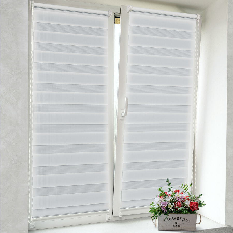 Рулонная штора день ночь, жалюзи рулонные с направляющими струнами Sola "Стандарт", белый, 57*160 см