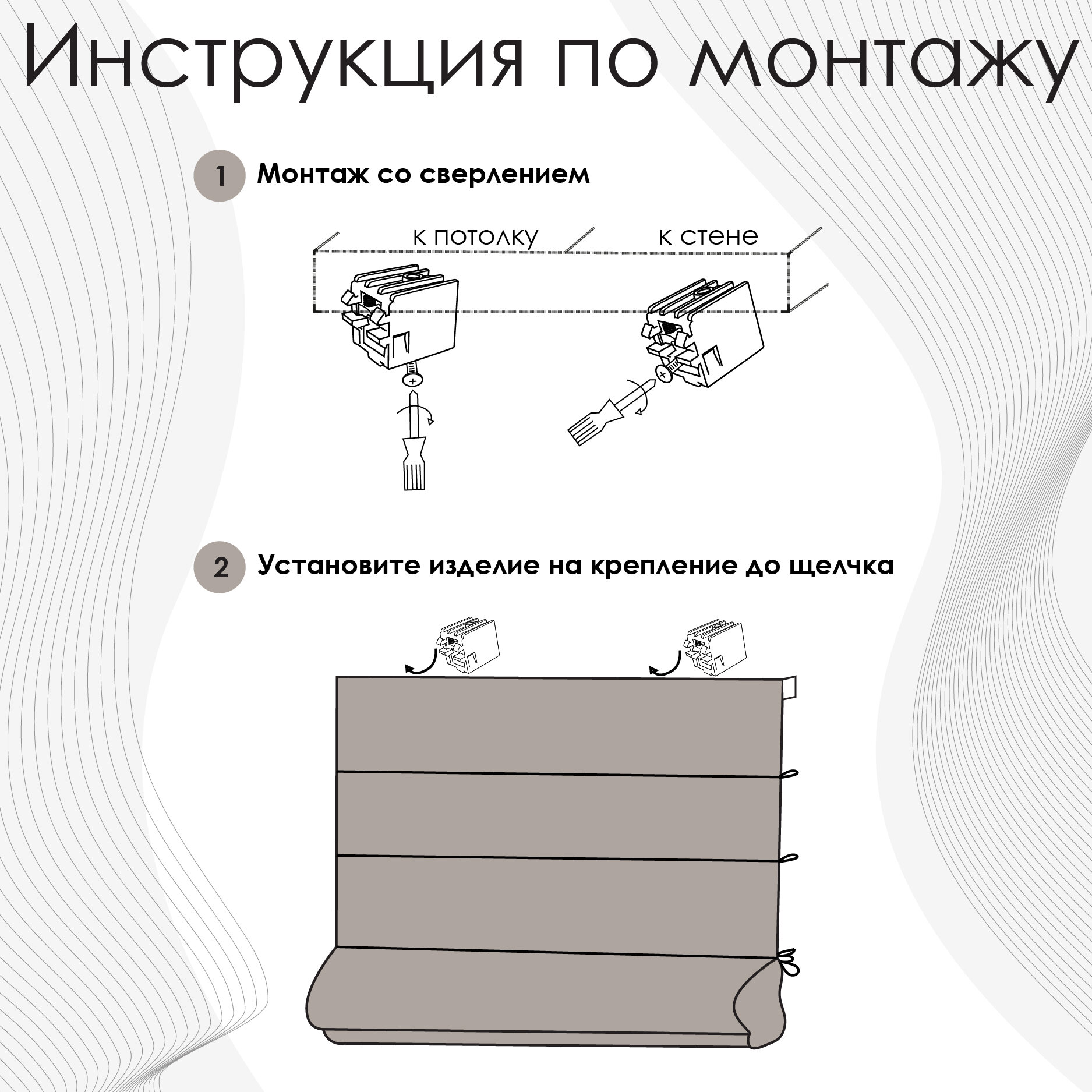 | Комплектация | римская штора в сборе, кронштейн для крепления, шурупы и дюбели |