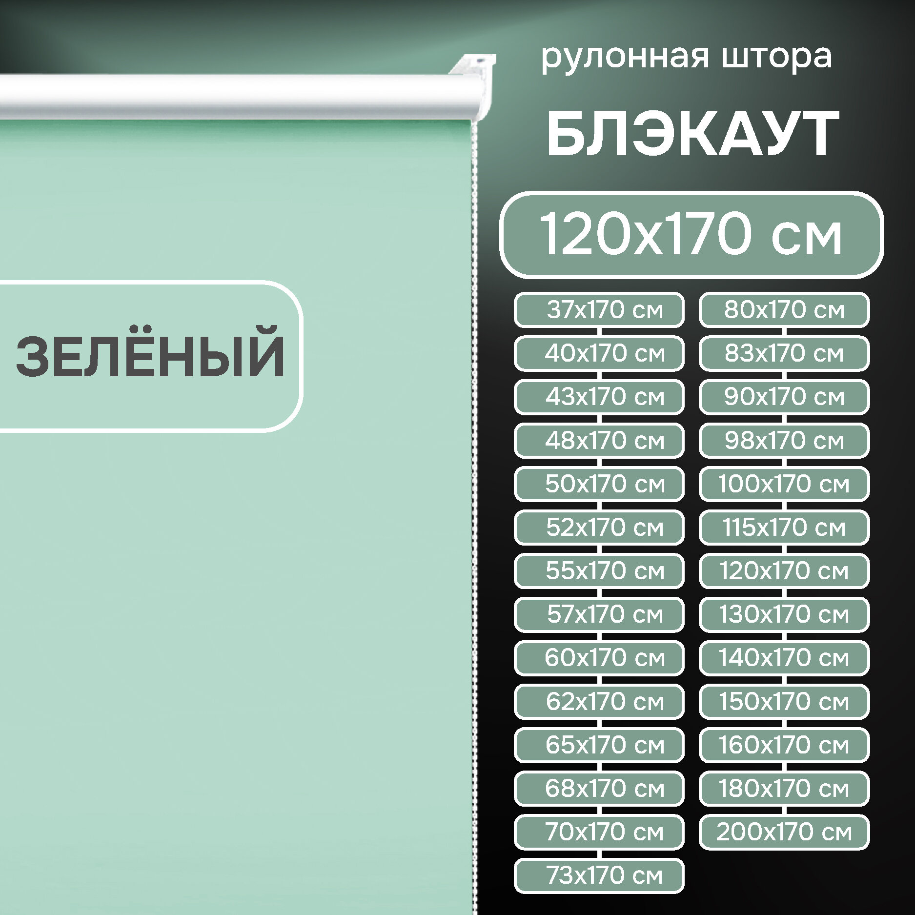 Рулонные шторы блэкаут 98х170 см, "Эскар", Lux зеленый