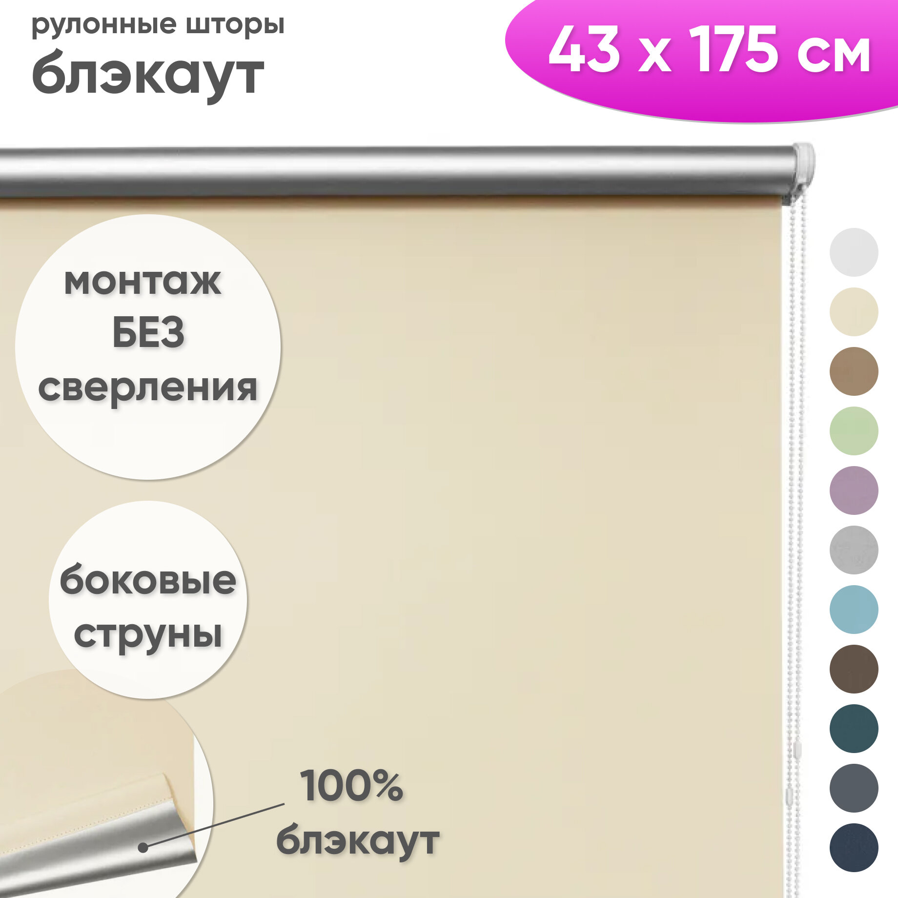 Купить Рулонные шторы блэкаут на окна "Шайн", 43 x 175 см, цвет кремовый