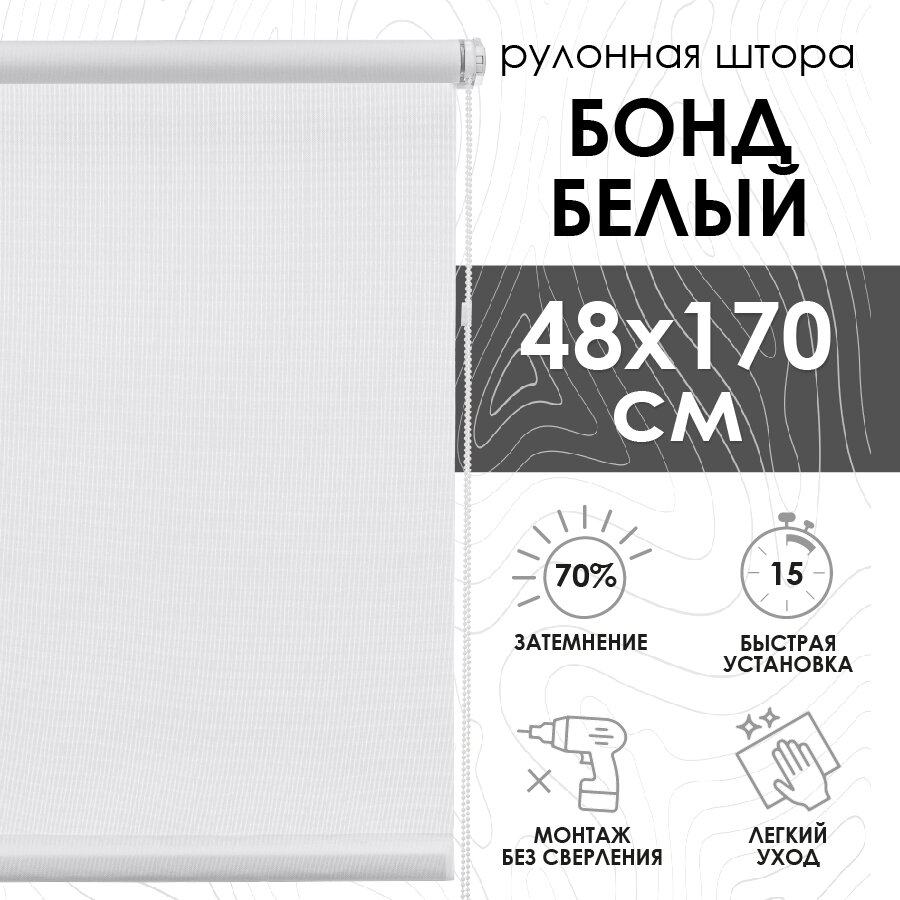Рулонные шторы "Бонд" 48х170 см, цвет белый