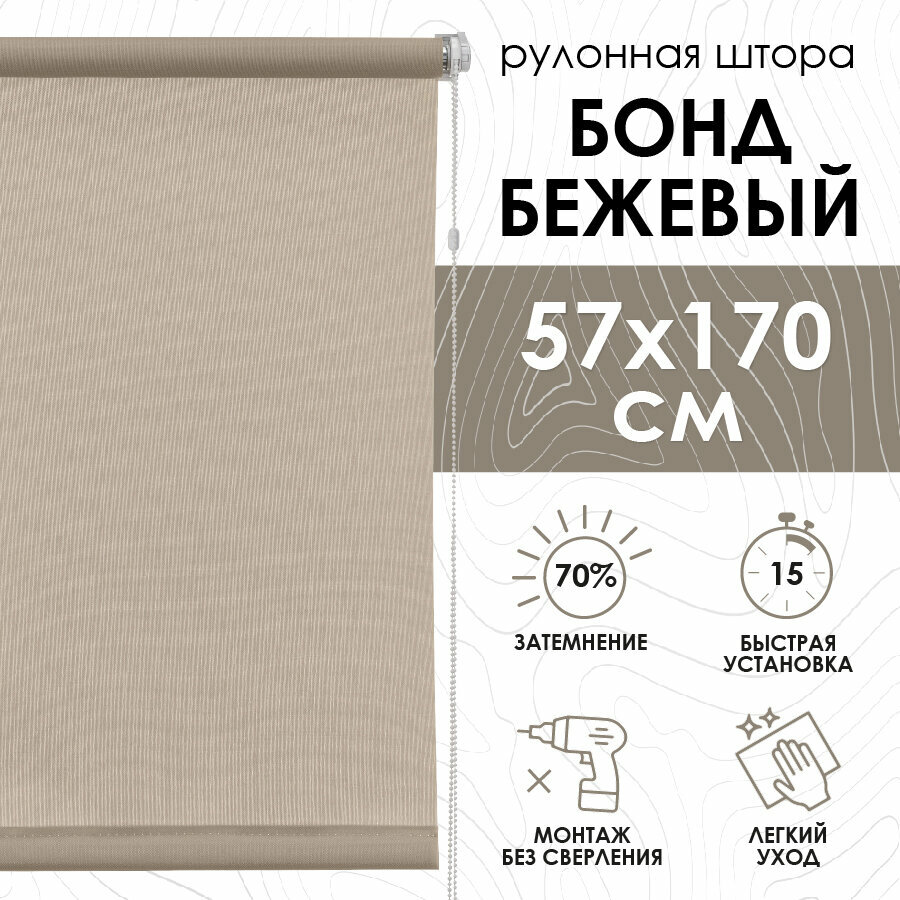 Рулонная штора Эскар Бонд, полиэстер, цвет бежевый, размер 57х170 см