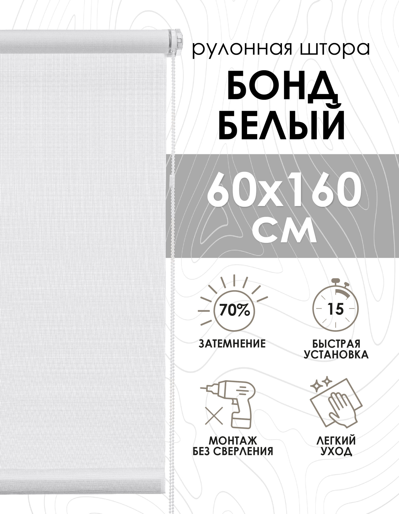 СохранитьРулонные шторы, "Эскар", Бонд Белый, 60х160 см интересное: