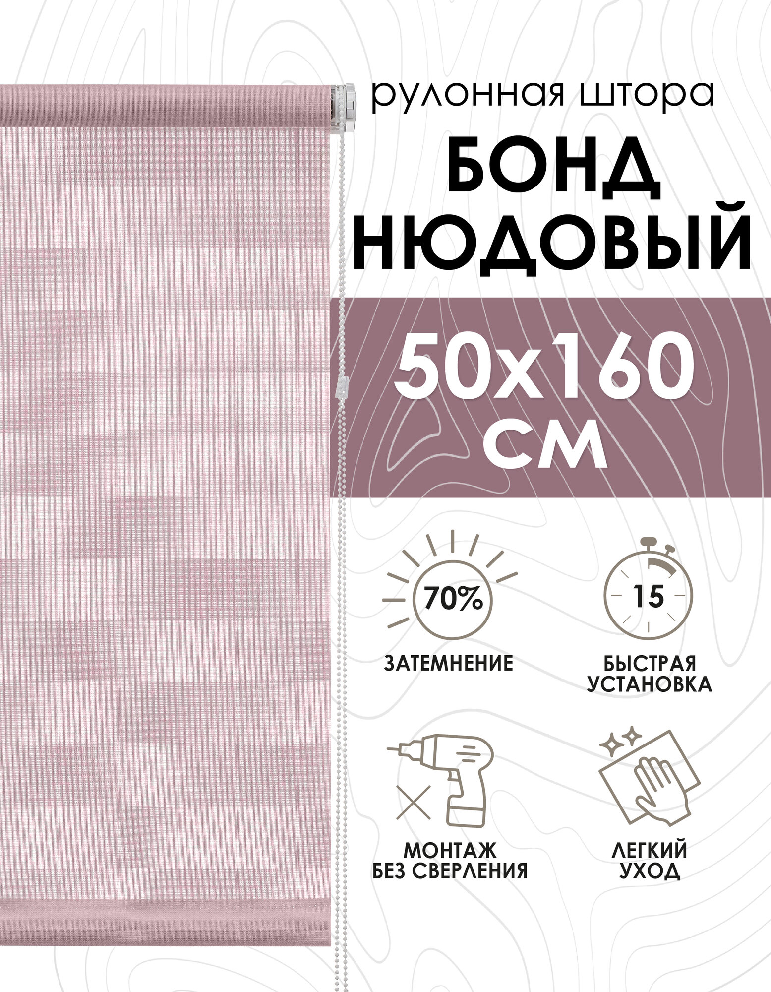 СохранитьЭскар Рулонные шторы, Бонд цвет нюдовый 50x160см, арт. 2918050160 интересное: