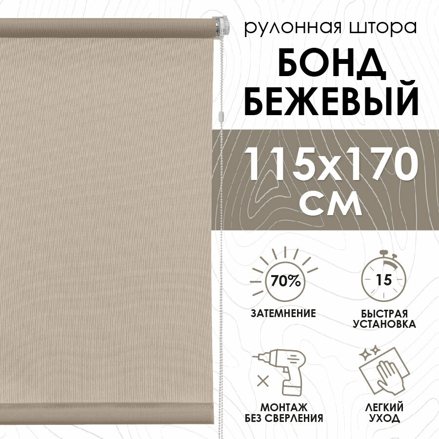 Рулонные шторы Эскар, Бонд, полиэстер, цвет Бежевый, размер 115х170 см