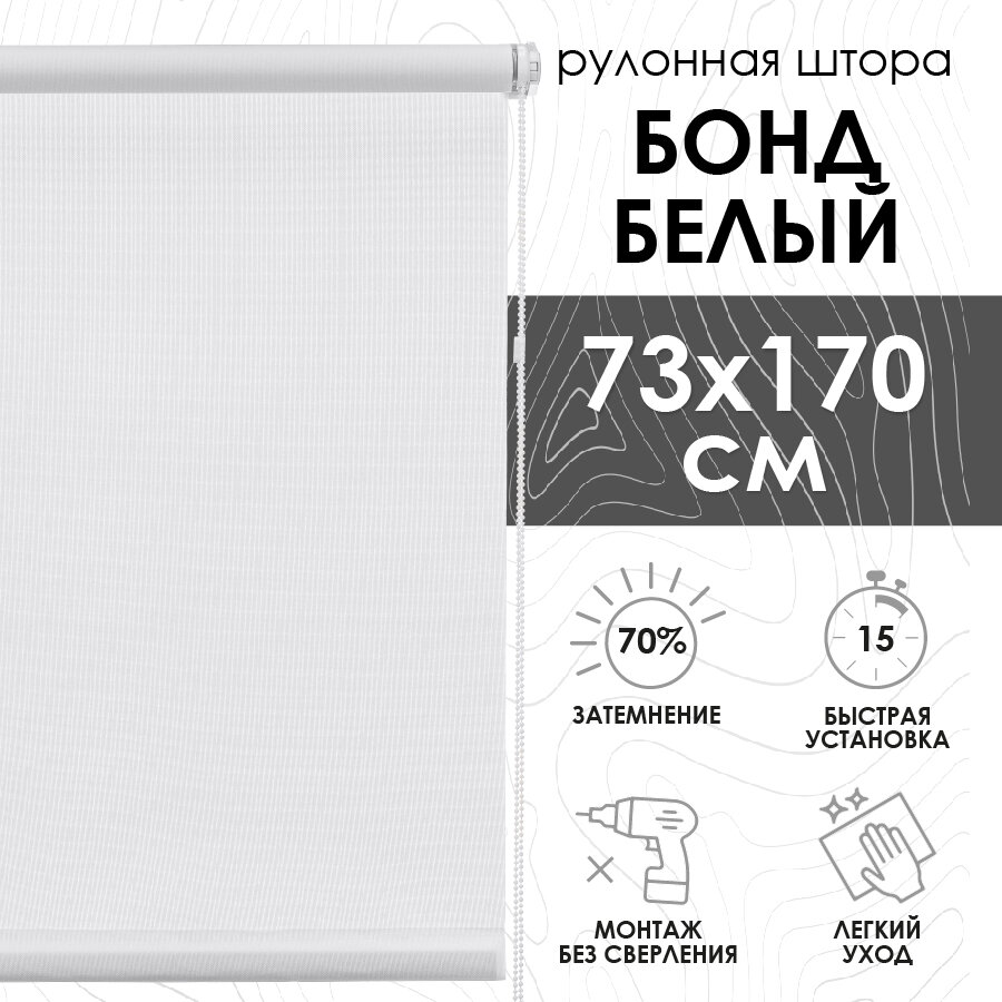Рулонная штора Эскар Бонд, полиэстер, цвет белый, размер 73х170
