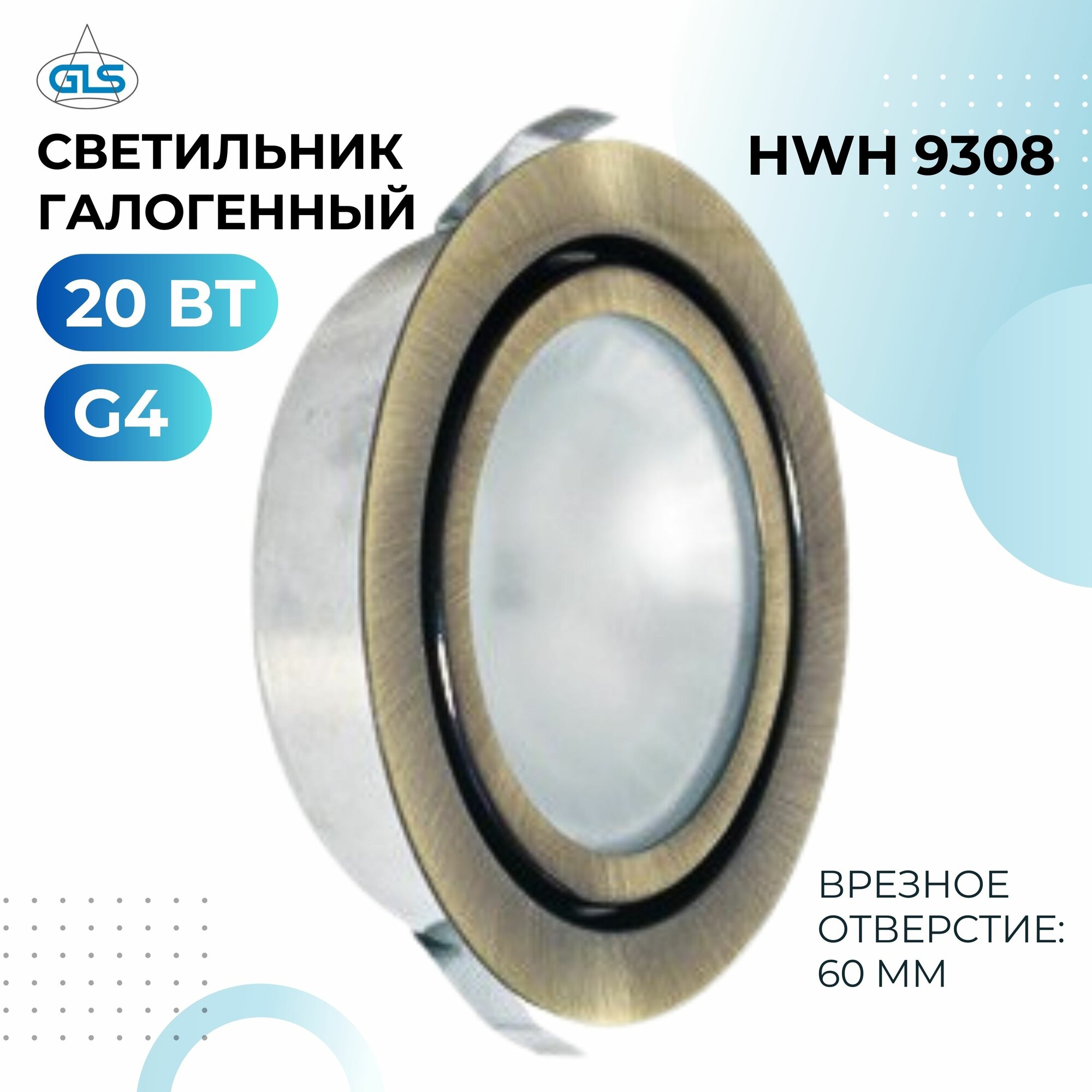 Купить Светильник галогенный врезной HWH 9308, GLS, 20 Вт, цвет зеленое античное золото