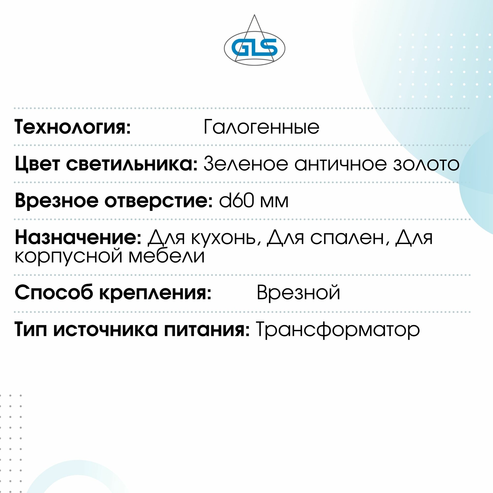 Светильник галогенный врезной HWH 9308, GLS, 20 Вт, цвет зеленое античное золото интересное: