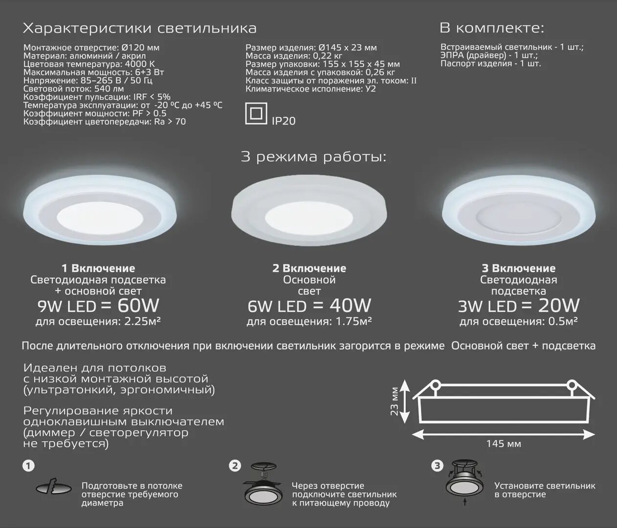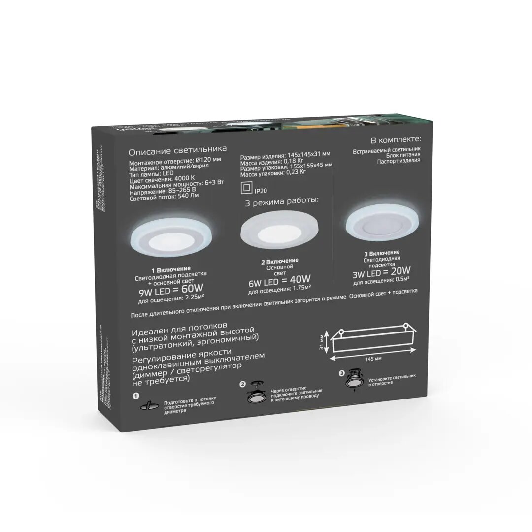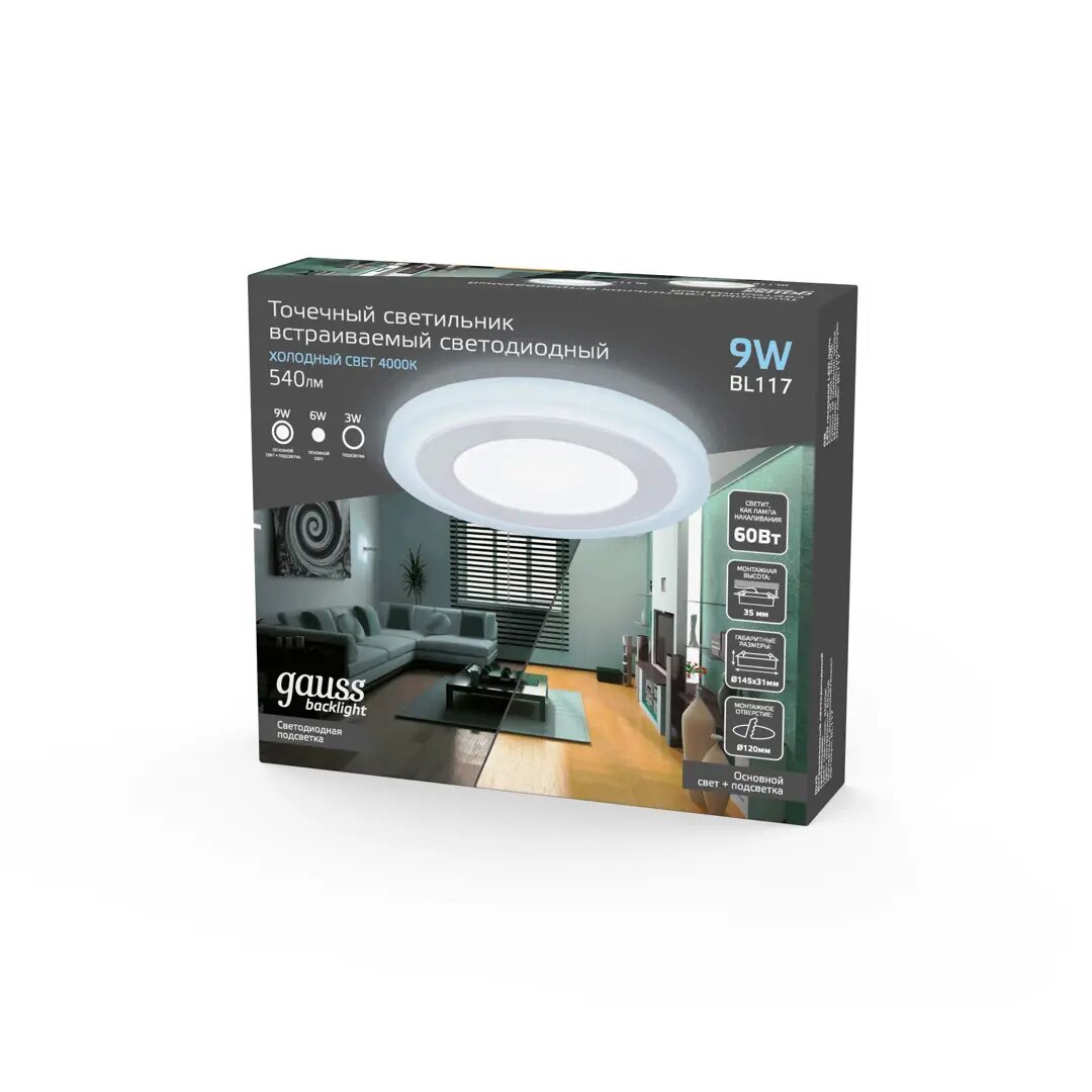 Светильник встраиваемый Gauss Backlight BL117 круглый 6 и 3 Вт свет холодный белый интересное: