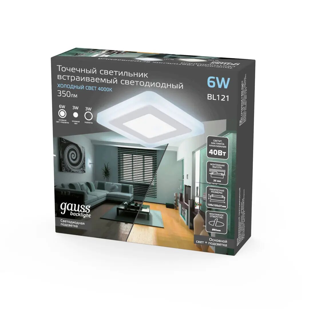 Светильник встраиваемый Gauss Backlight BL121 квадрат, свет нейтральный белый интересное: