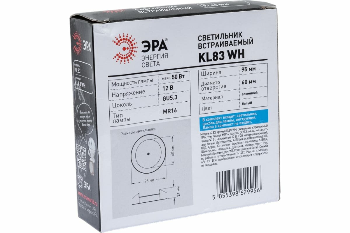 Ниже Вы можете прочитать отзывы на Светильник встраиваемый ЭРА KL83 WH точечный софит под лампу GU5.3 50Вт, ознакомится с подробными характеристиками, посмотреть интересные обзоры и фотографии на Светильник встраиваемый ЭРА KL83 WH точечный софит под лампу GU5.3 50Вт.