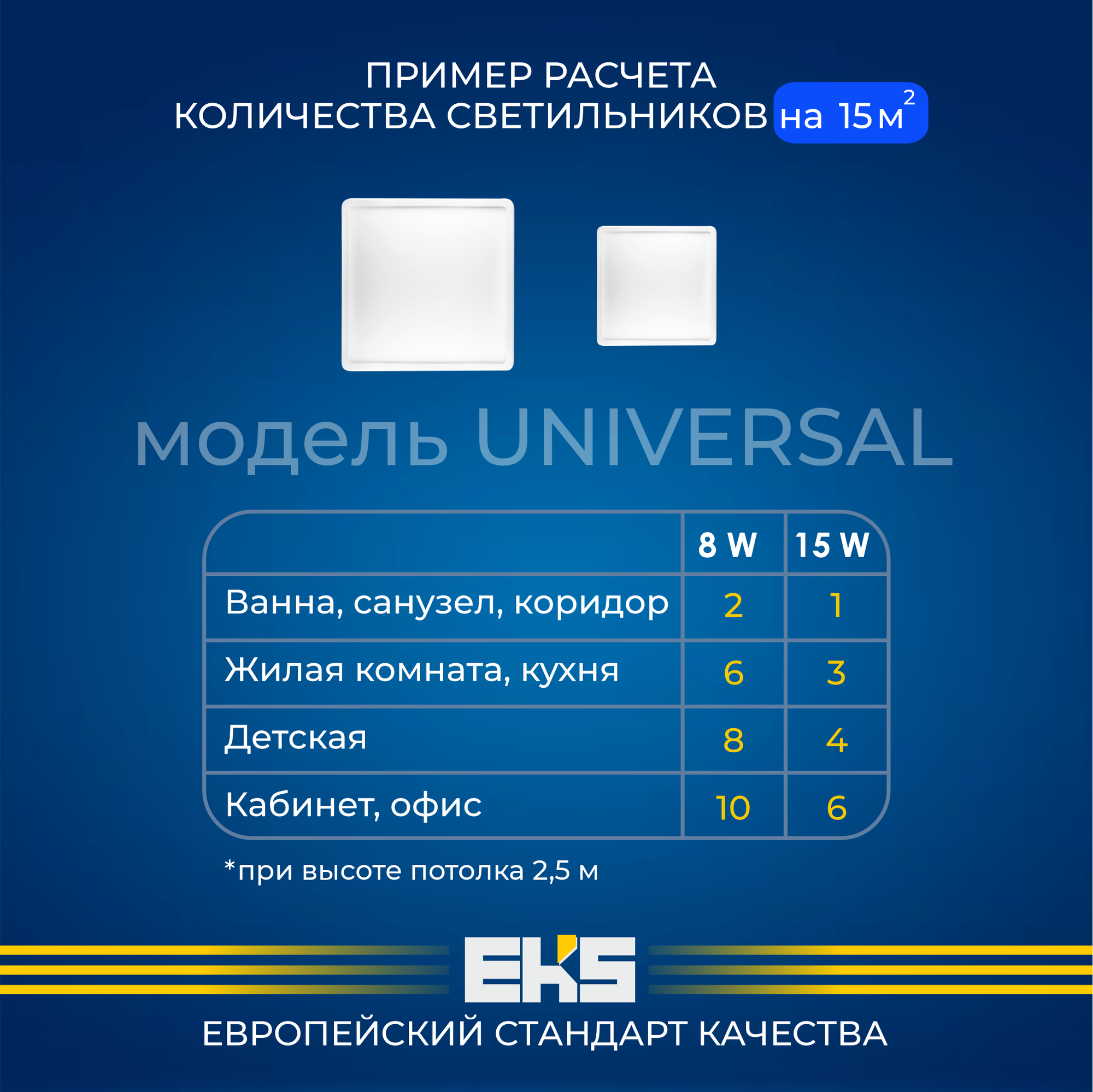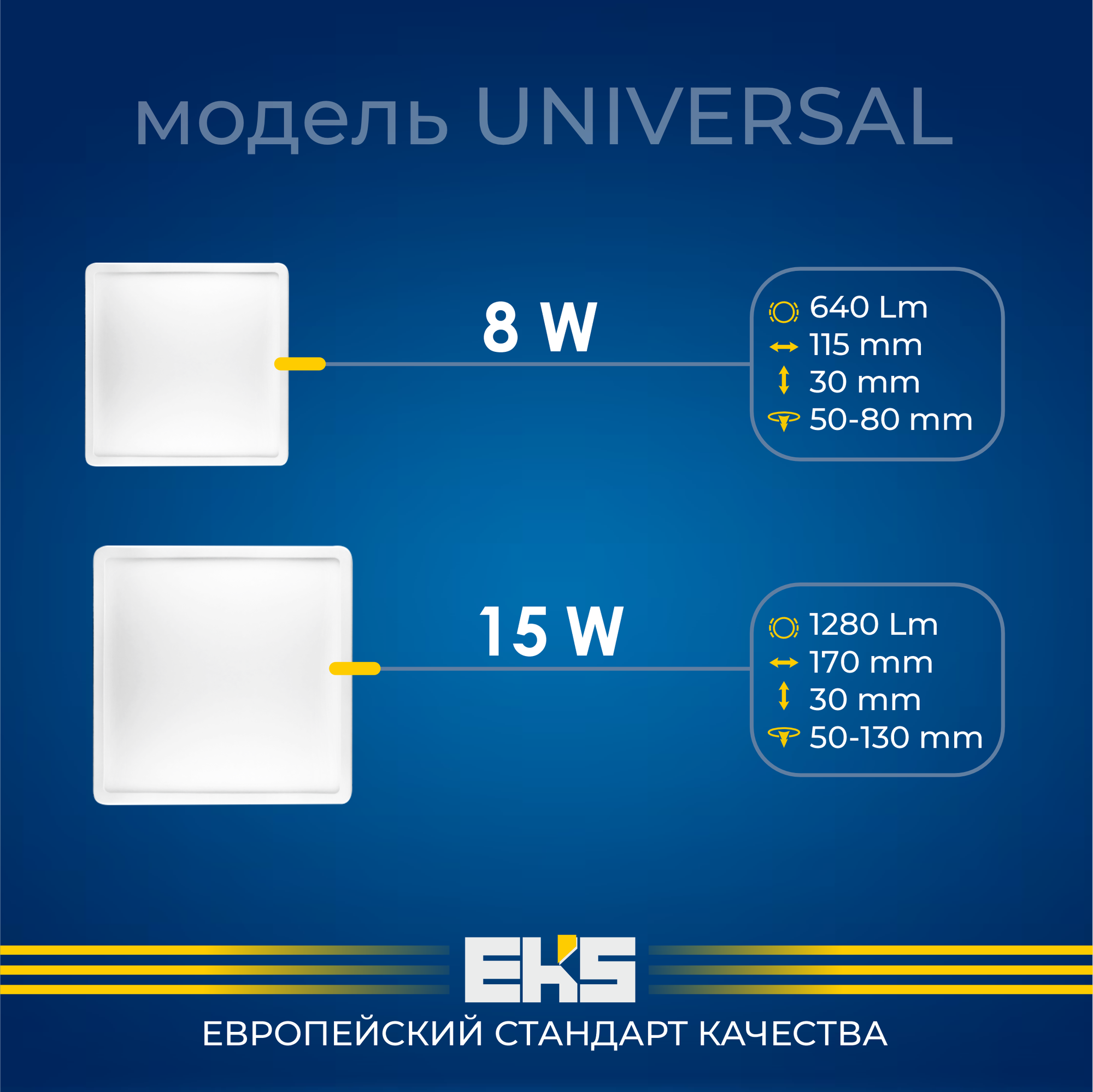 Встраиваемый светильник EKS UNIVERSAL - Светодиодная панель, LED панель квадрат (15 Вт, 1280 Лм), 1 шт. интересное: