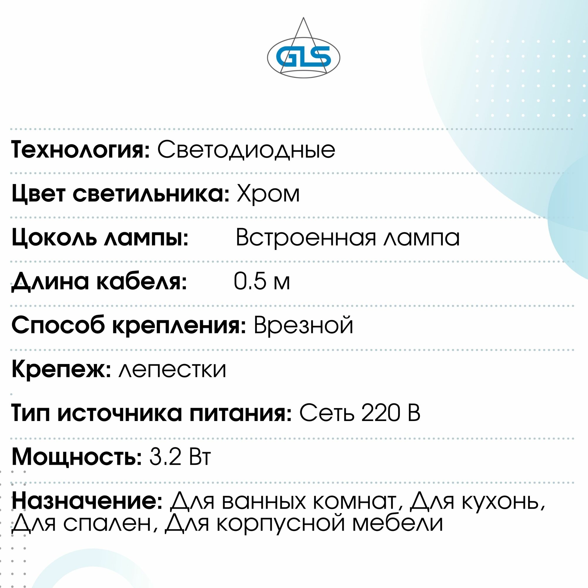 Встраиваемый светильник GLS LED Polus-Е , 3,2 Вт, 220V IP44, 4000К, светодиодный мебельный врезной, цвет хром интересное: