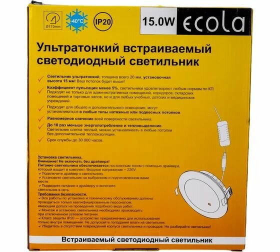 Светодиодный LED светильник даунлайт круглый Ecola 15W 220V 4200K 195x20 DRRV15ELC