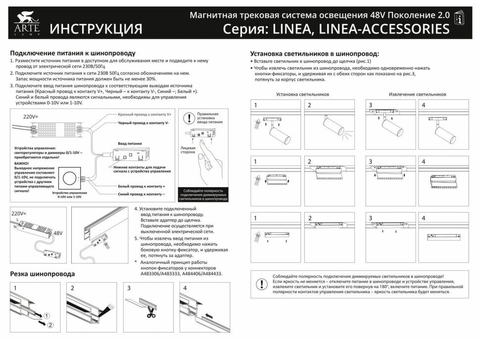 Магнитный трековый светильник Arte Lamp LINEA 0.1-10V A4685PL-1BK LED чёрный