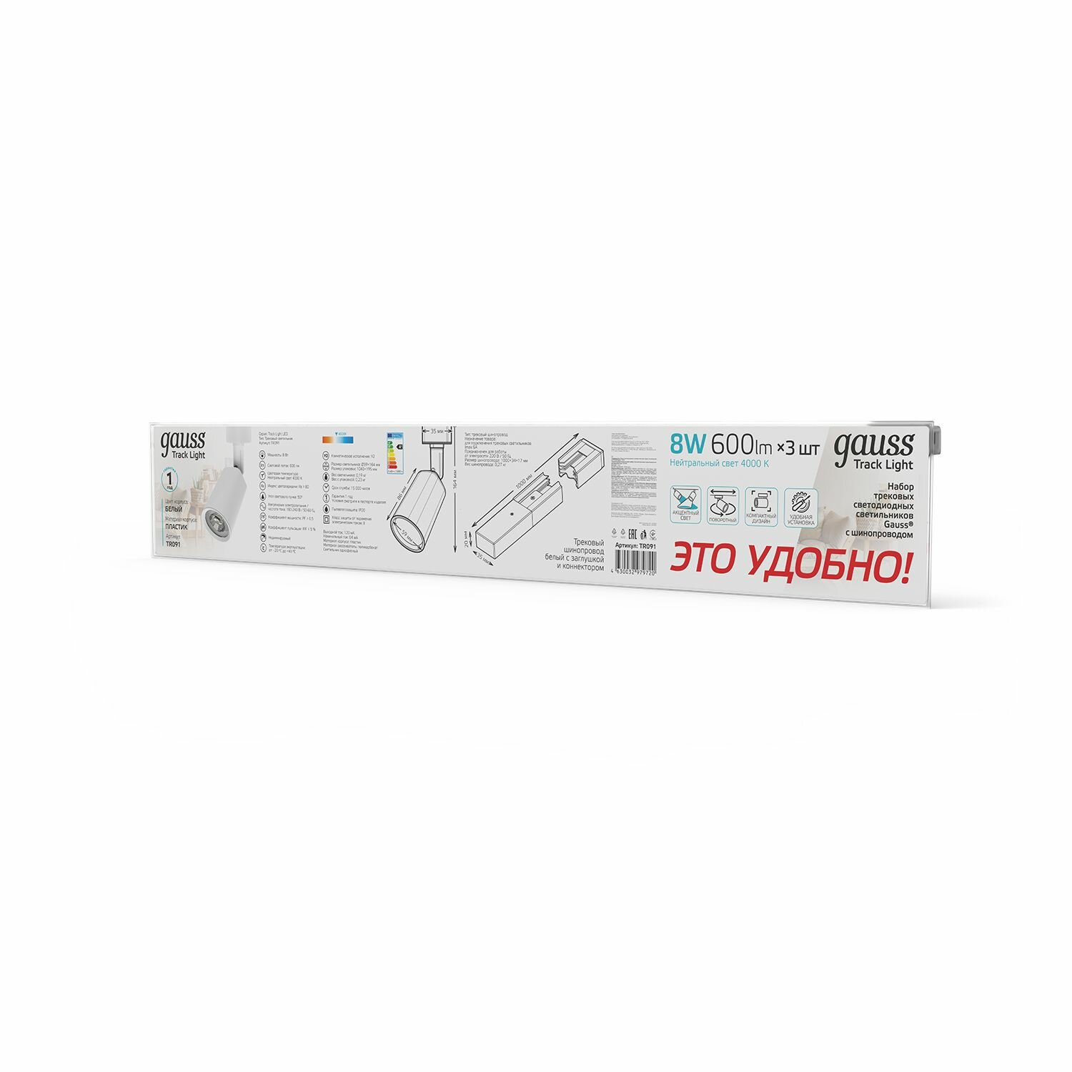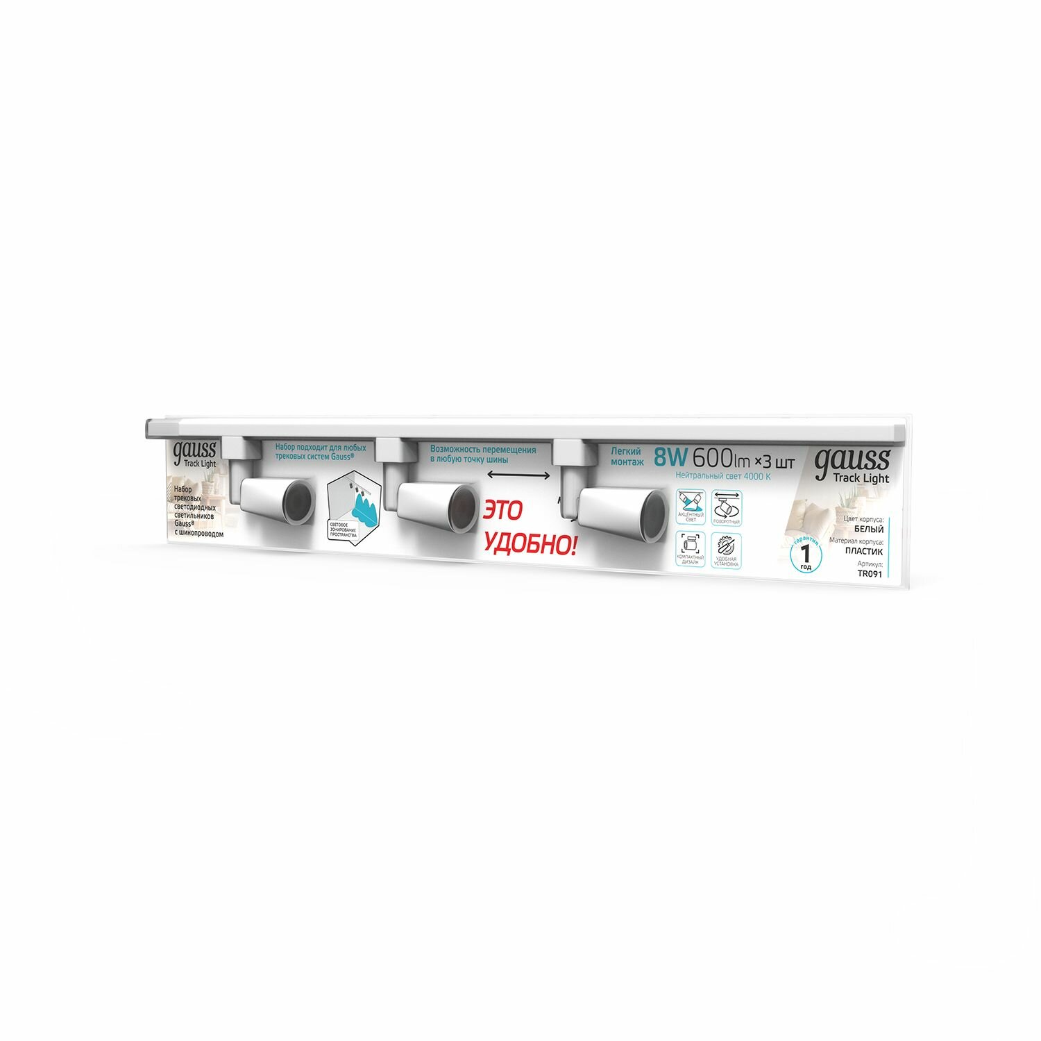 Трековый светильник белый Gauss готовый комплект 3 светильника 8W 4000K + шинопровод 1метр интересное: