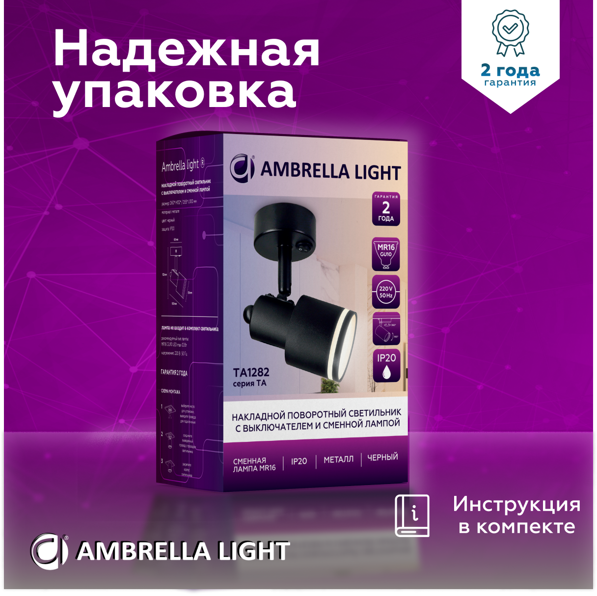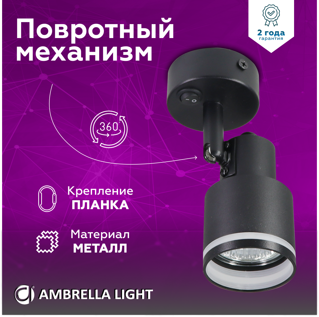 Светильник спот настенный или потолочный с выключателем Ambrella Light TA1292 BK, GU10, черный