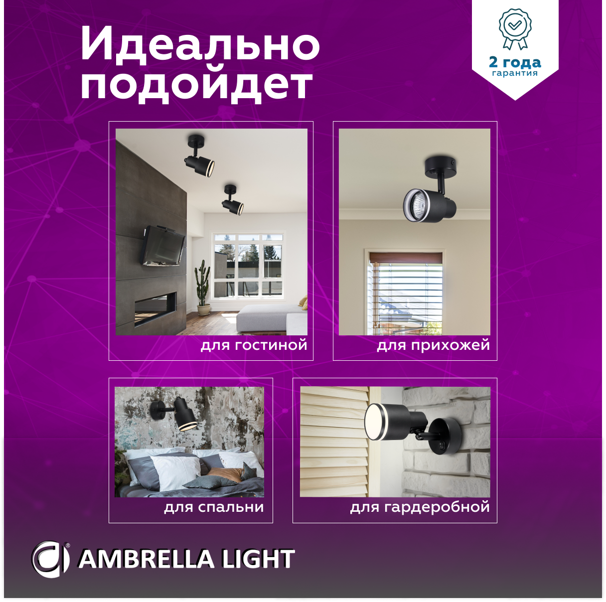 Спот Ambrella Light Techno Spot XM6313031 (A2221, C6313, N6104), Светодиодная, GU5.3, Металл/Черный, Металл/Черный, Хай-тек, В гостиную, На потолок, Цилиндр, Китай