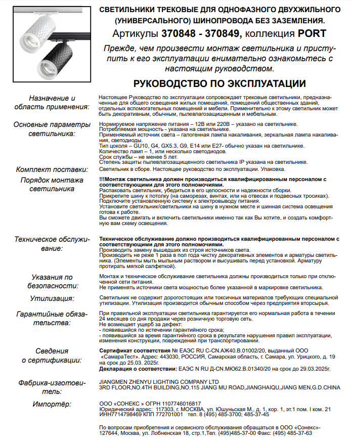 | Дополнительная информация | поворотный светильник, угол поворота: 90° / 355° |