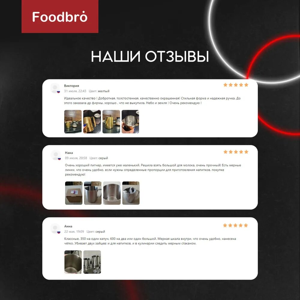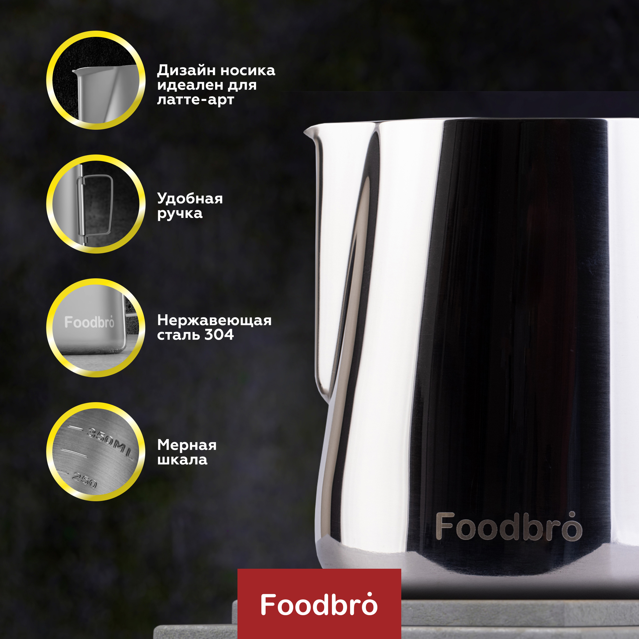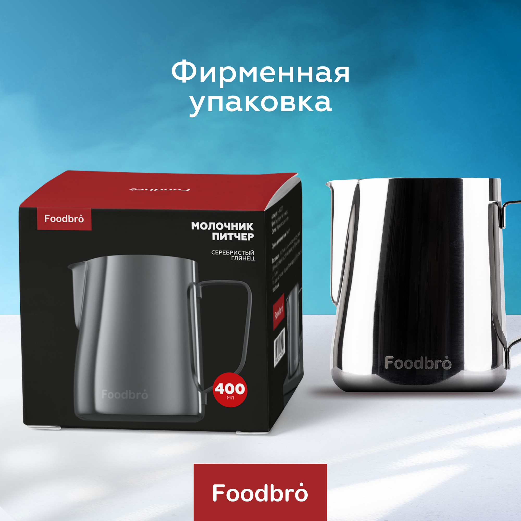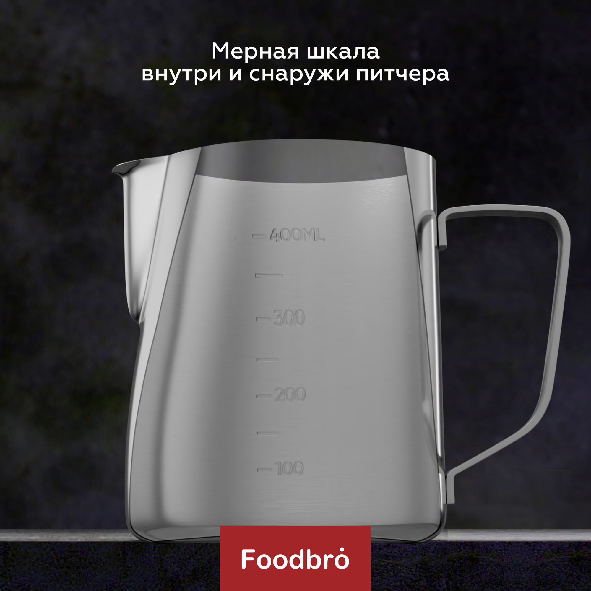 Питчер Молочник Foodbro с мерной шкалой 400мл (Серебристый) интересное: