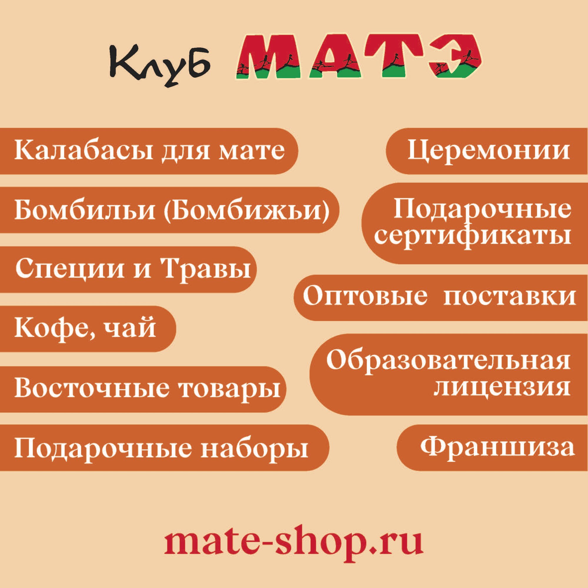 | Дополнительная информация | Матэ активно влияет на процесс сжигания жиров, выводит избыток жидкости из организма, обладает сильными общеукрепляющими и тонизирующими свойствами, является природным болеутоляющим и иммуностимулирующим средством, препятствует образованию и накоплению молочной кислоты, оказывает расслабляющие действие на все группы мышц. Матэ незаменимый источник витаминов, минералов и аминокислот. |
