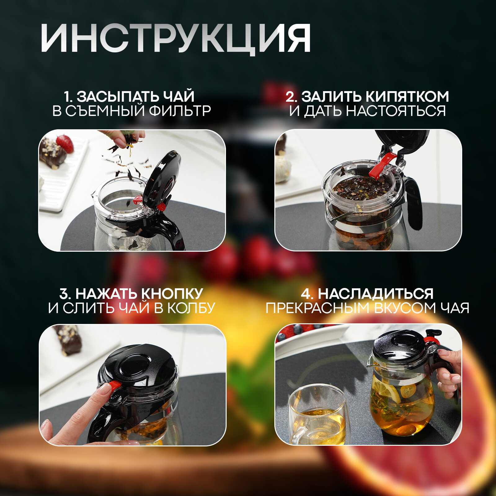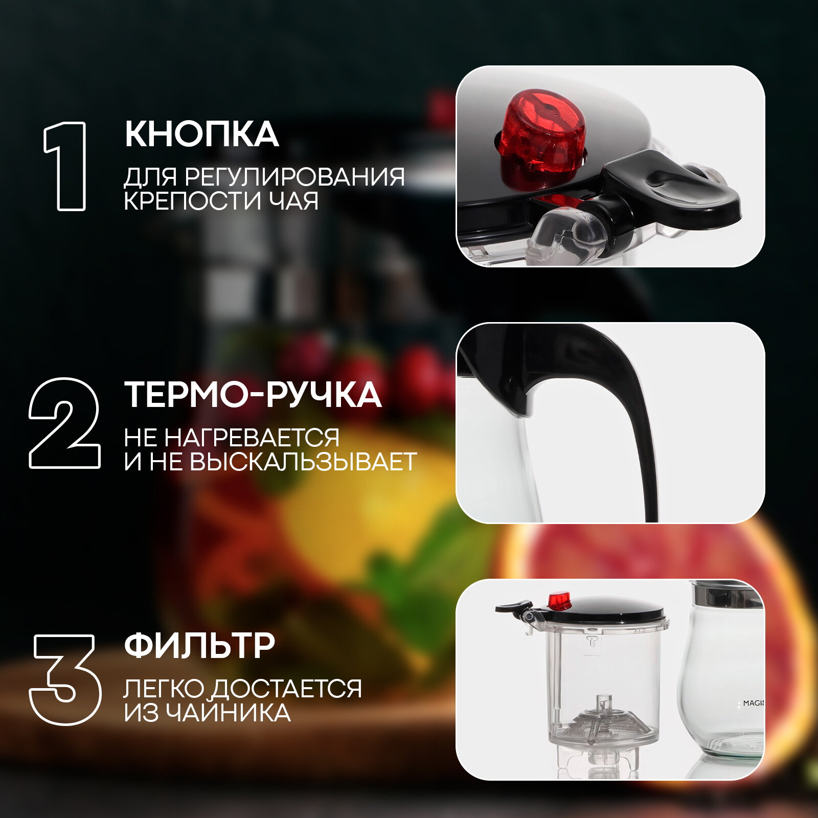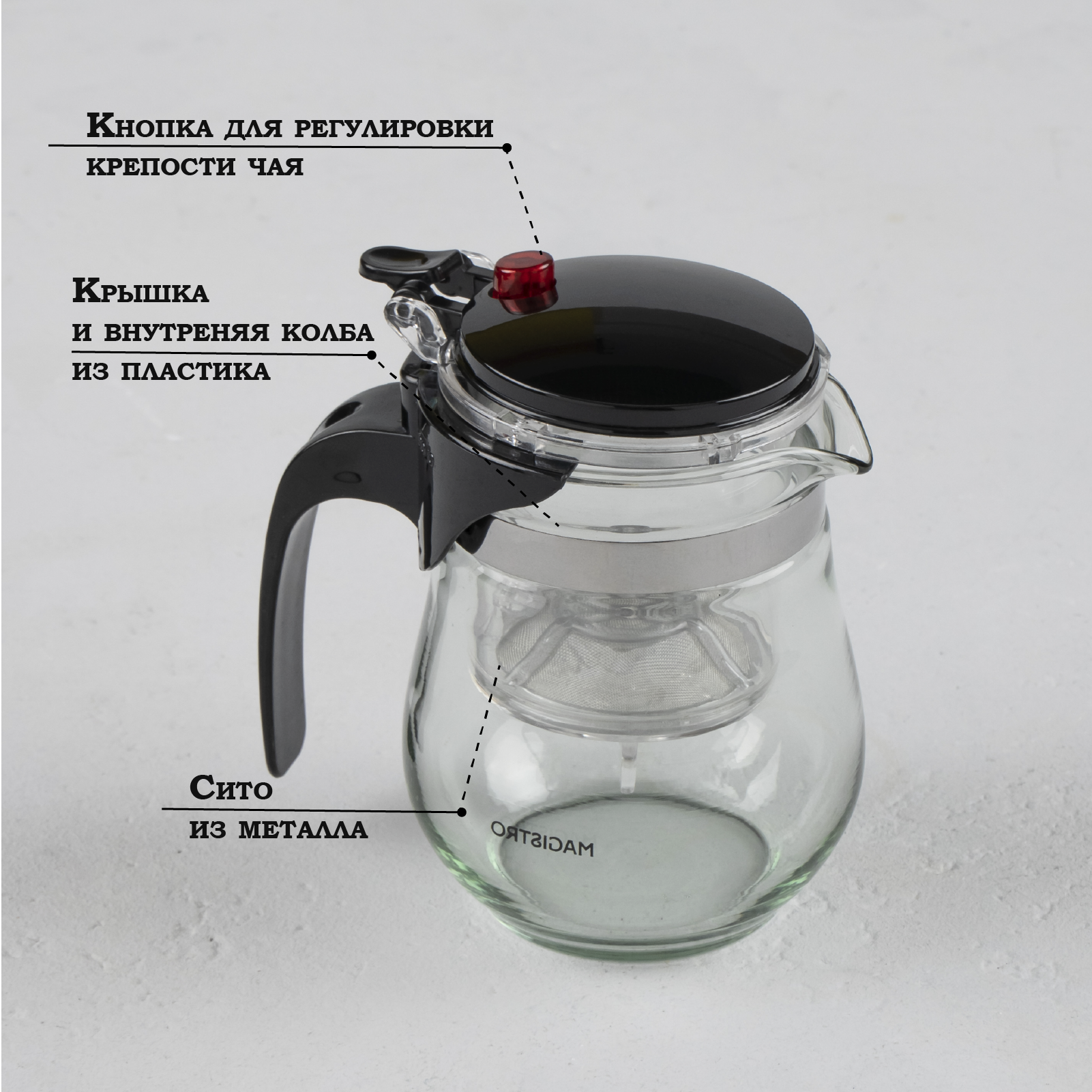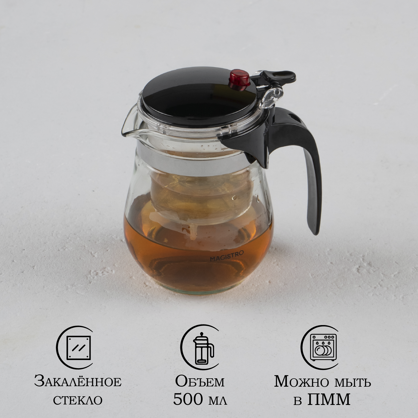 | Особенности | кнопка Гунфу / мытье в посудомоечной машине / ситечко / термоизолированная ручка |