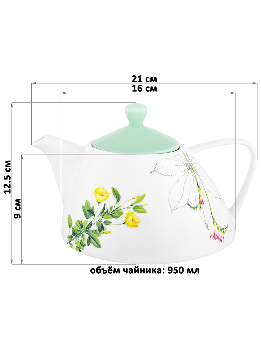 | Дополнительная информация | Чайник заварочный с зеленой крышкой 21*16*12,5 см, 950 мл, высота без крышки 9 см, крышка 8*8*5 см, внутри чайника - дырочки в носике. Не рекомендуется использовать абразивные моющие средства. |