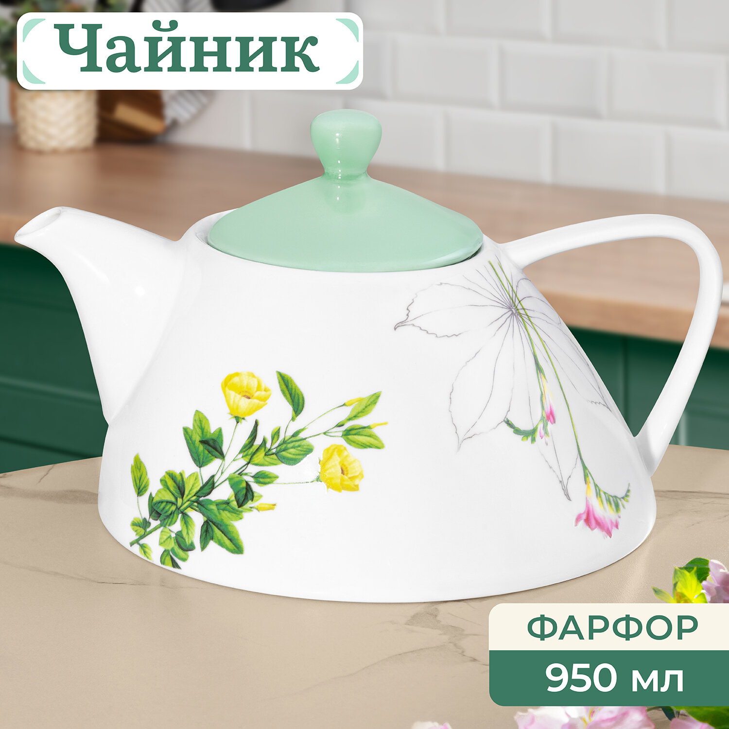 Купить Чайник заварочный 950 мл Elan Gallery "Ботанический атлас" с зеленой крышкой