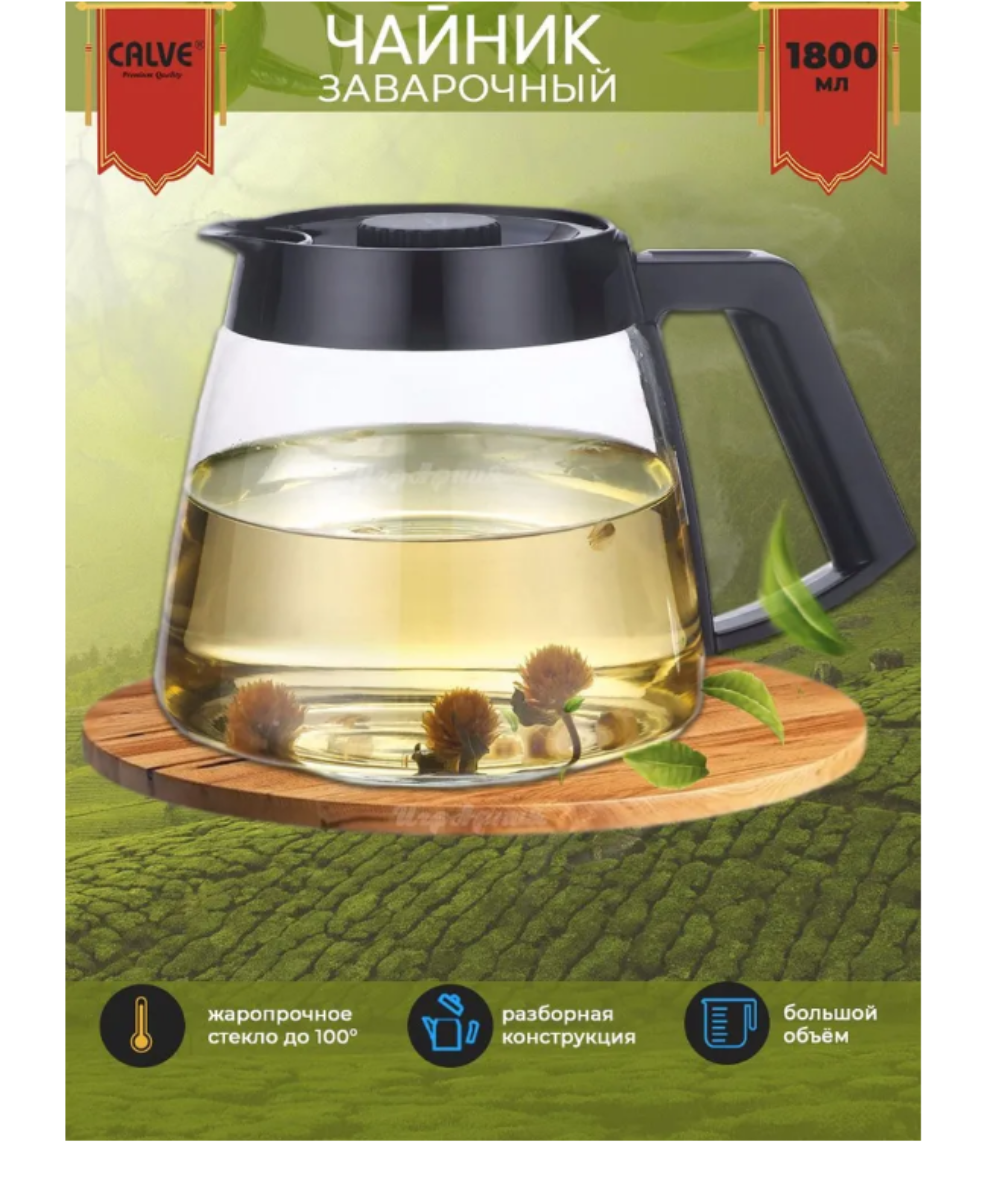 Чайник заварочный CALVE (1800 мл), жаропрочное стекло CL-7006 интересное: