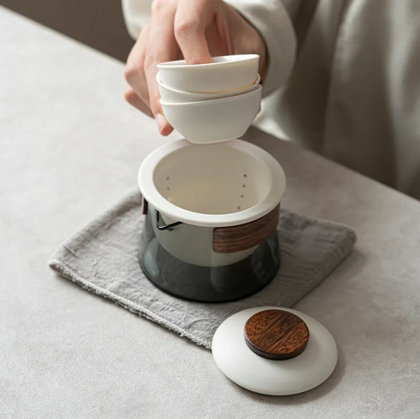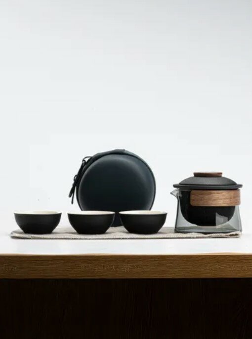Чайник заварочный "Nomad" с пиалами для чая в китайском стиле черная керамика интересное: