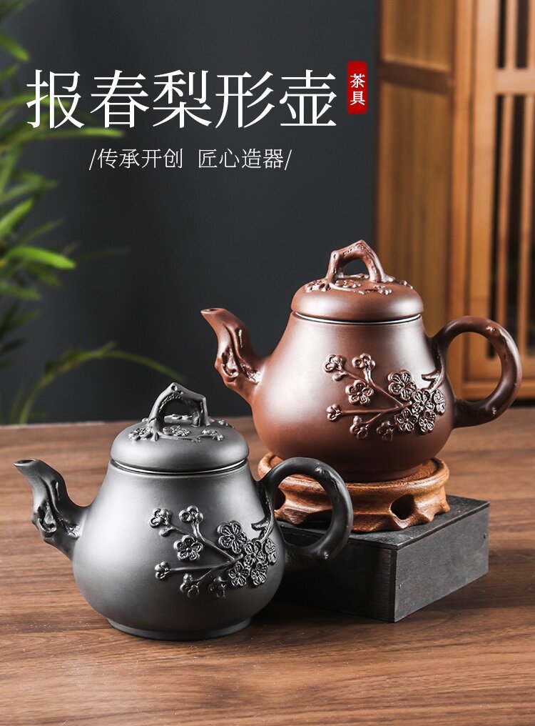 Заварочный чайник "Ветка Сакуры" с ситечком ручная работа из Исинской фиолетовой глины (400 мл) интересное: