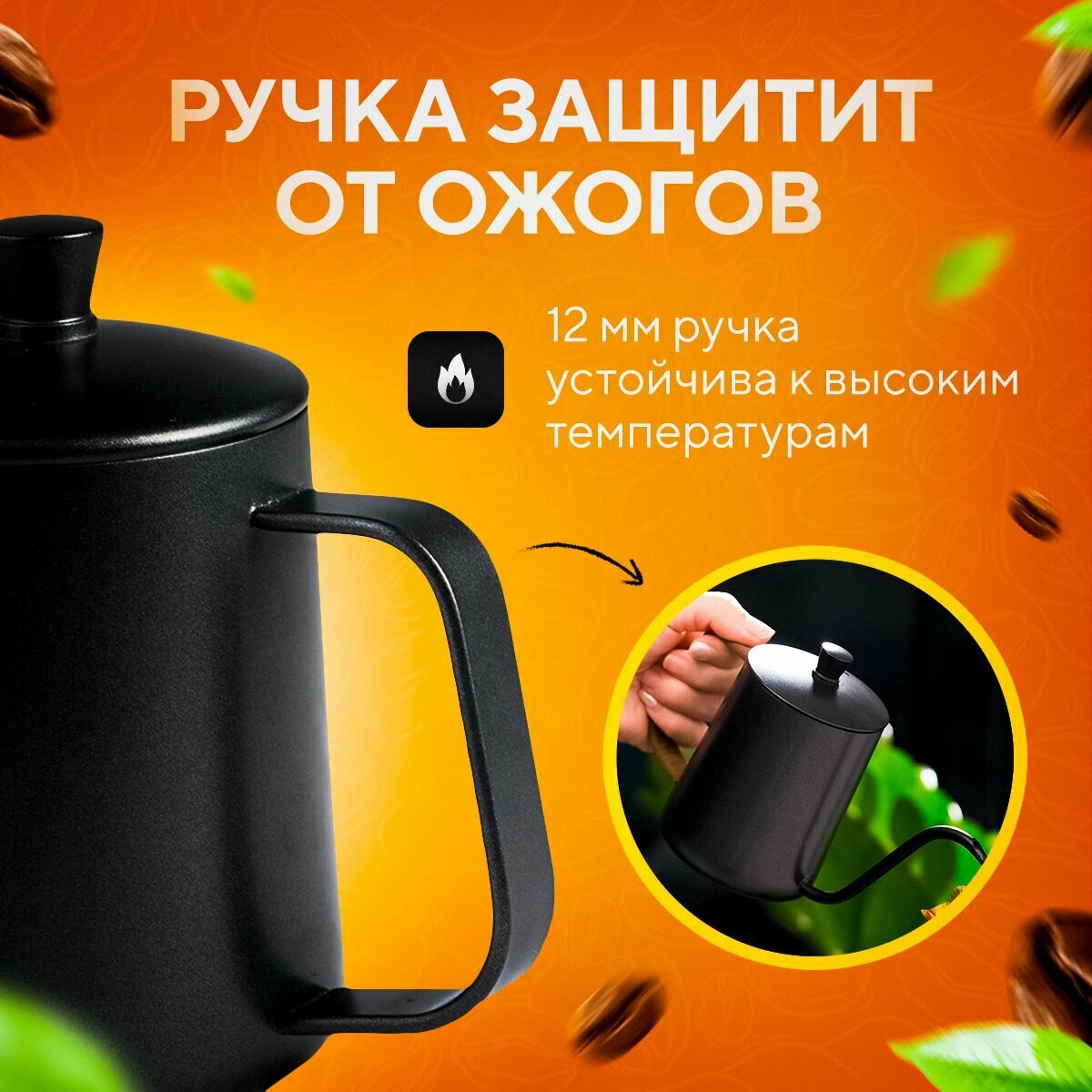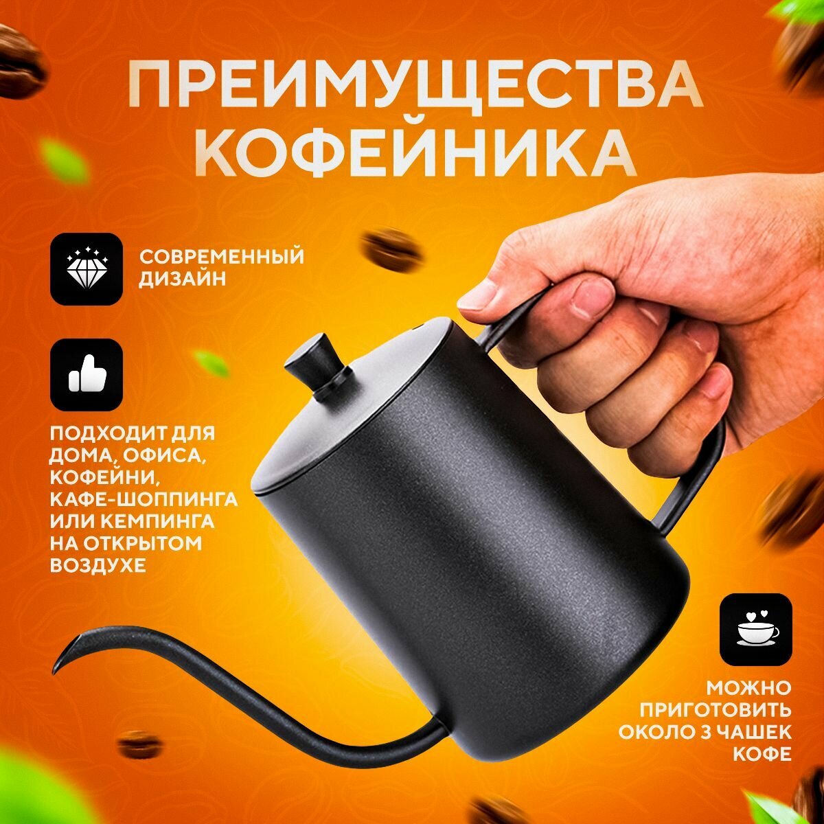 Кофейник с длинным носиком Vevoxo, металлический, 600 мл интересное: