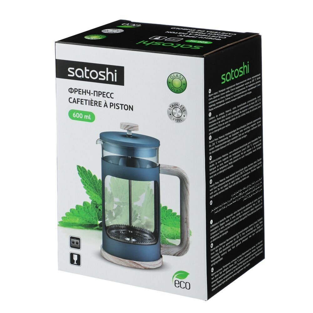 Френч-пресс 600 мл SATOSHI Шарлеруа, жаропрочное стекло, заварочный чайник для кофе и чая