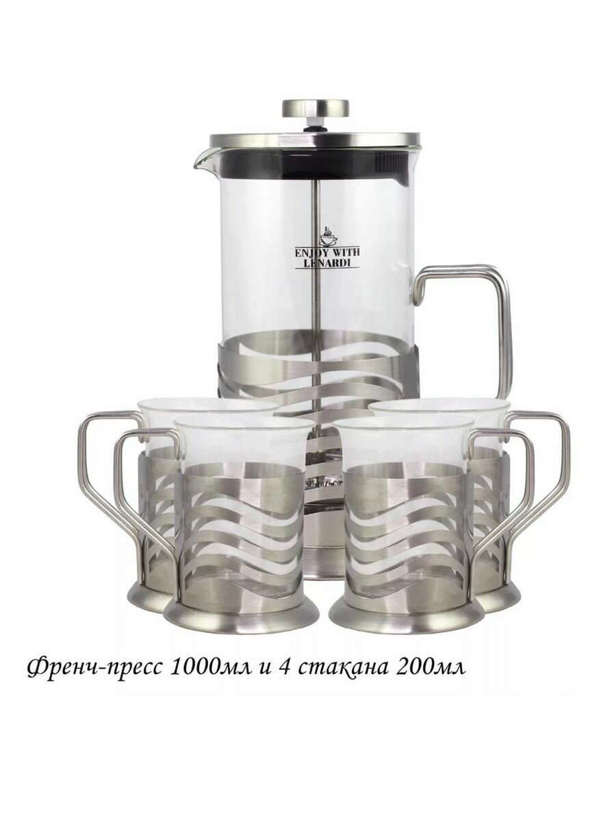 Френч-пресс 1000 мл. и 4 стакана 200 мл. Стекло Lenardi (179796)