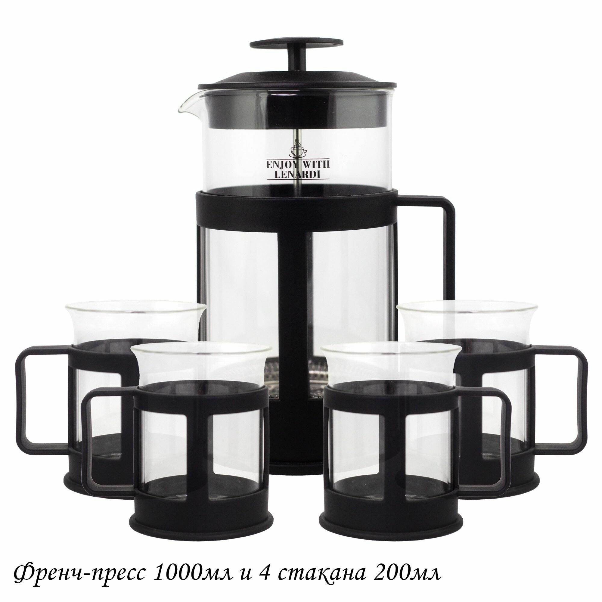 Френч-пресс 1000 мл. и 4 стакана 200 мл. Стекло Lenardi (179796)