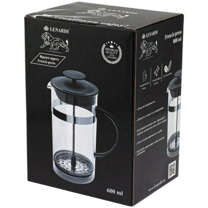 Френч-пресс "Lenardi" 179793, стекло, 600мл, чёрный/прозрачный