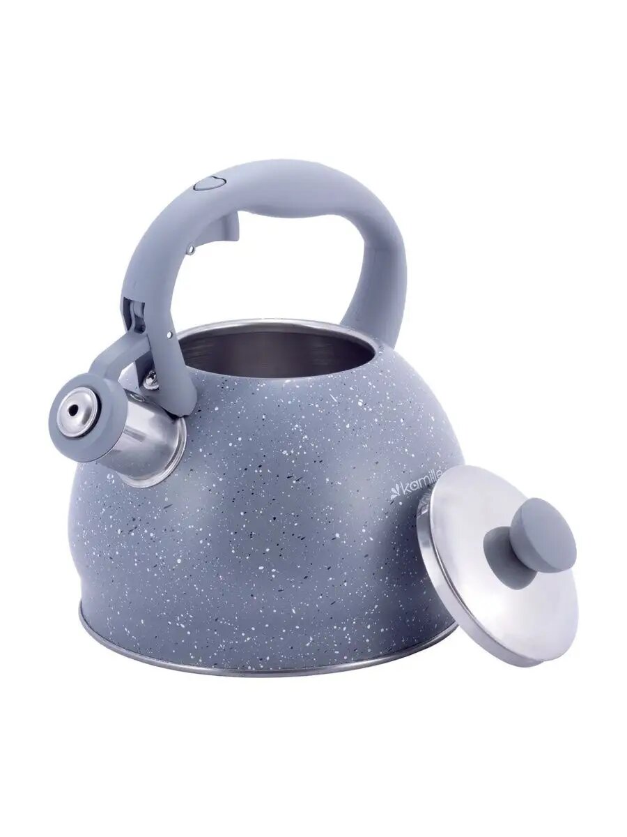 Купить Чайник 2 л. из нержавеющей стали со свистком Kamille KM-1072 с мраморным покрытием (1072GR / серый)