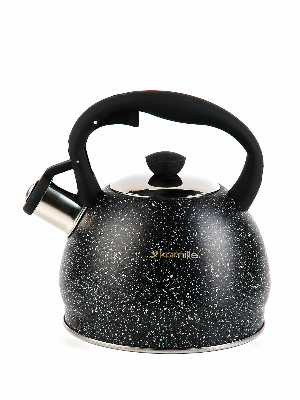 Купить Чайник 2 л. из нержавеющей стали со свистком Kamille KM-1072 с мраморным покрытием (1072BL / черный)