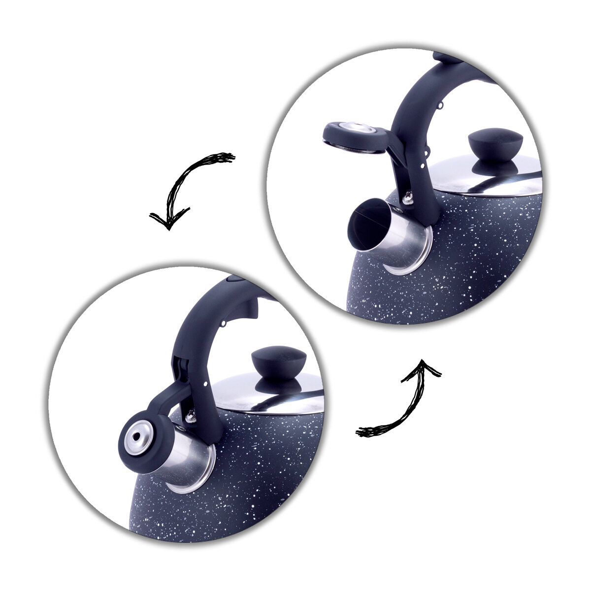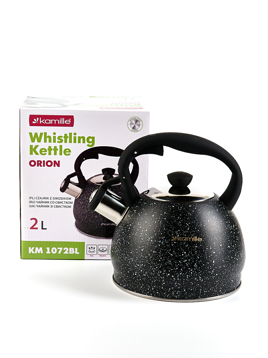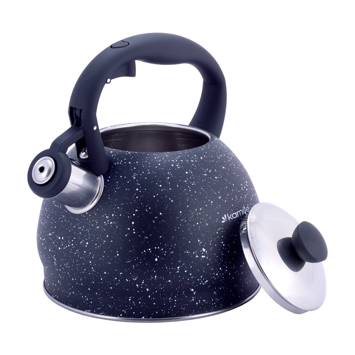 Чайник 2 л. из нержавеющей стали со свистком Kamille KM-1072 с мраморным покрытием (1072BL / черный) интересное:
