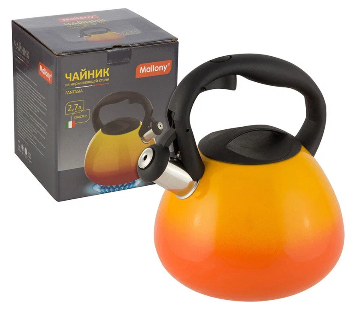 Купить Чайник FANTASIA, объём 2,7 л, из нержавеющей стали со свистком, корпус с переходом цвета