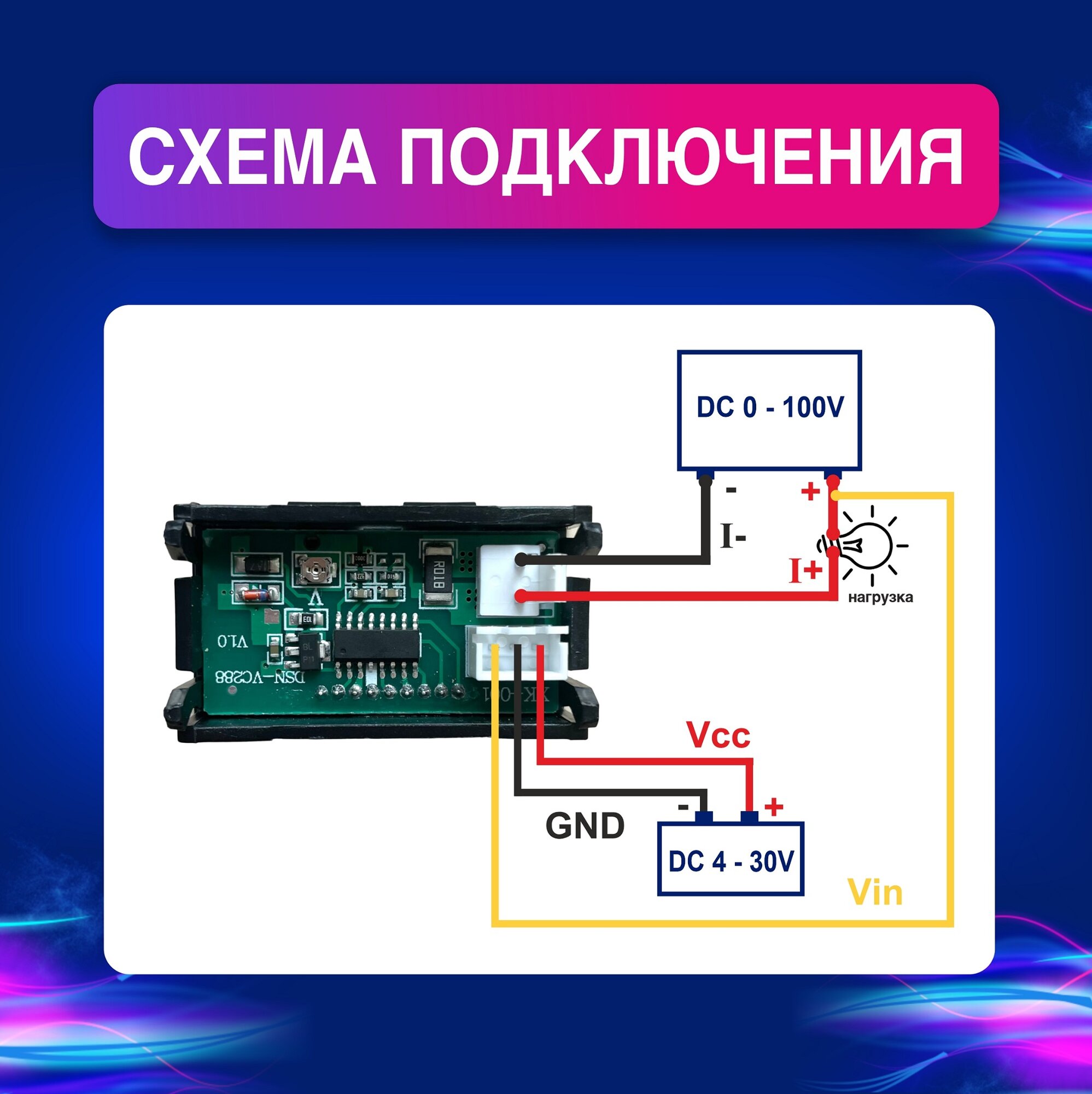 Rezer OT-INM01 вольтамперметр. Цифровой вольтметр амперметр DC 100 В. 10A. Автомобильный вольтамперметр.