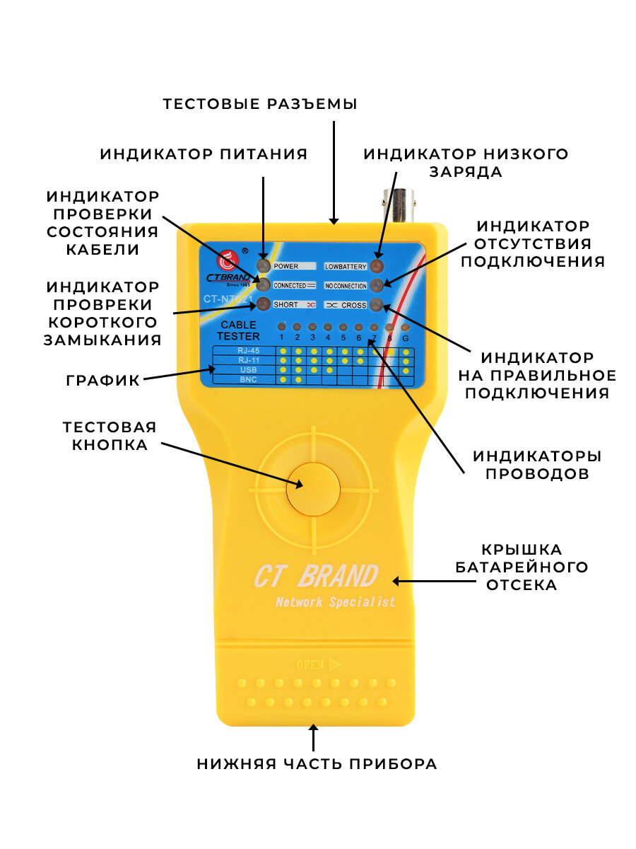 Тестер кабеля CT-NT021 интересное: