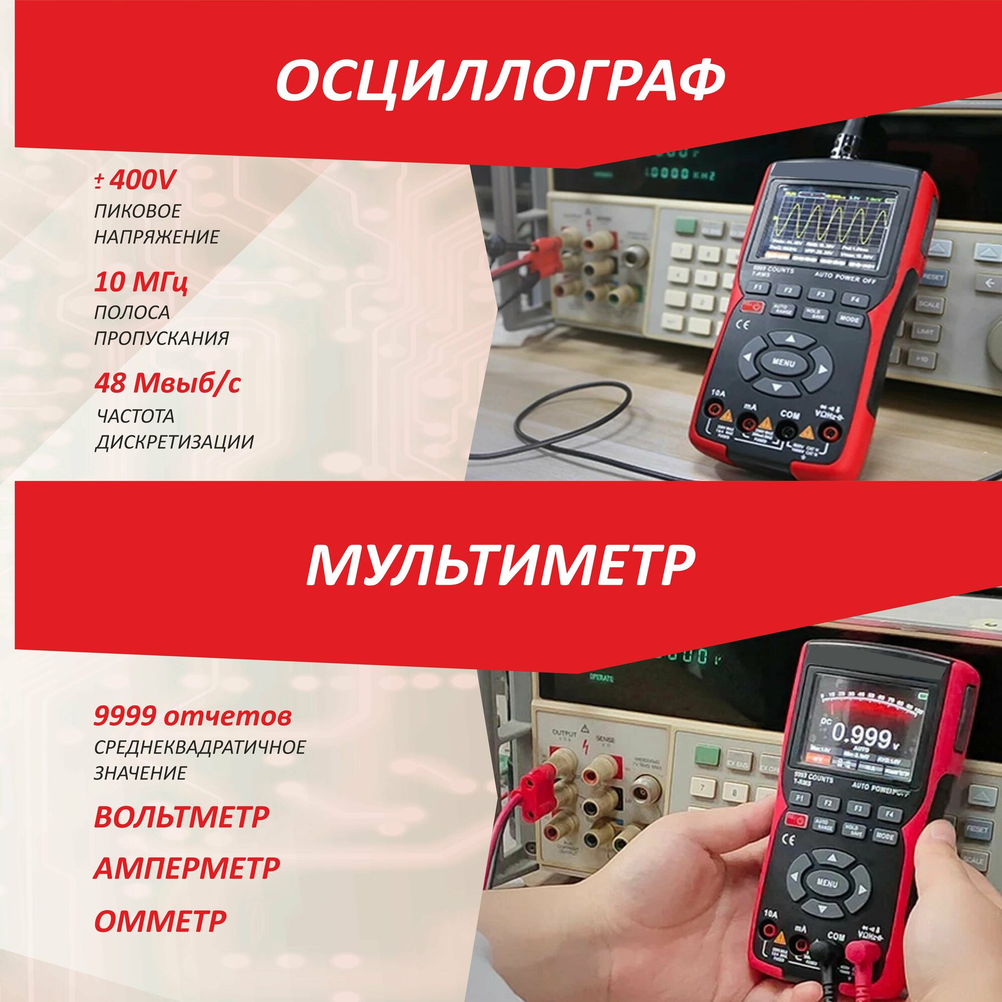 Цифровой осциллограф 3 в 1, портативный мультиметр, генератор сигналов со встроенным аккумулятором