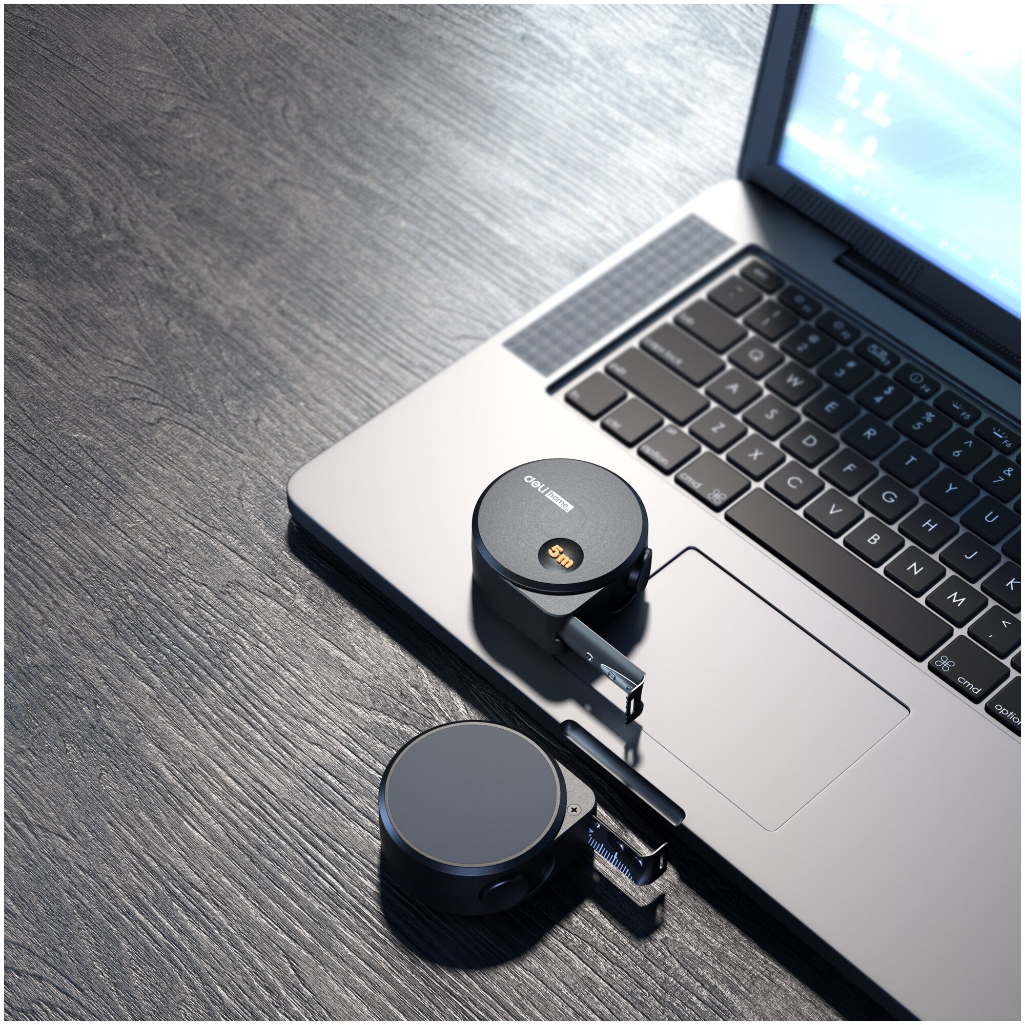 Купить Рулетка "Home Series Black" Deli HT8519 5мх19мм (Эксклюзивный дизайн, корпус из софттач пластика, противоскользящая резиновая вставка, подарочная упаковка)