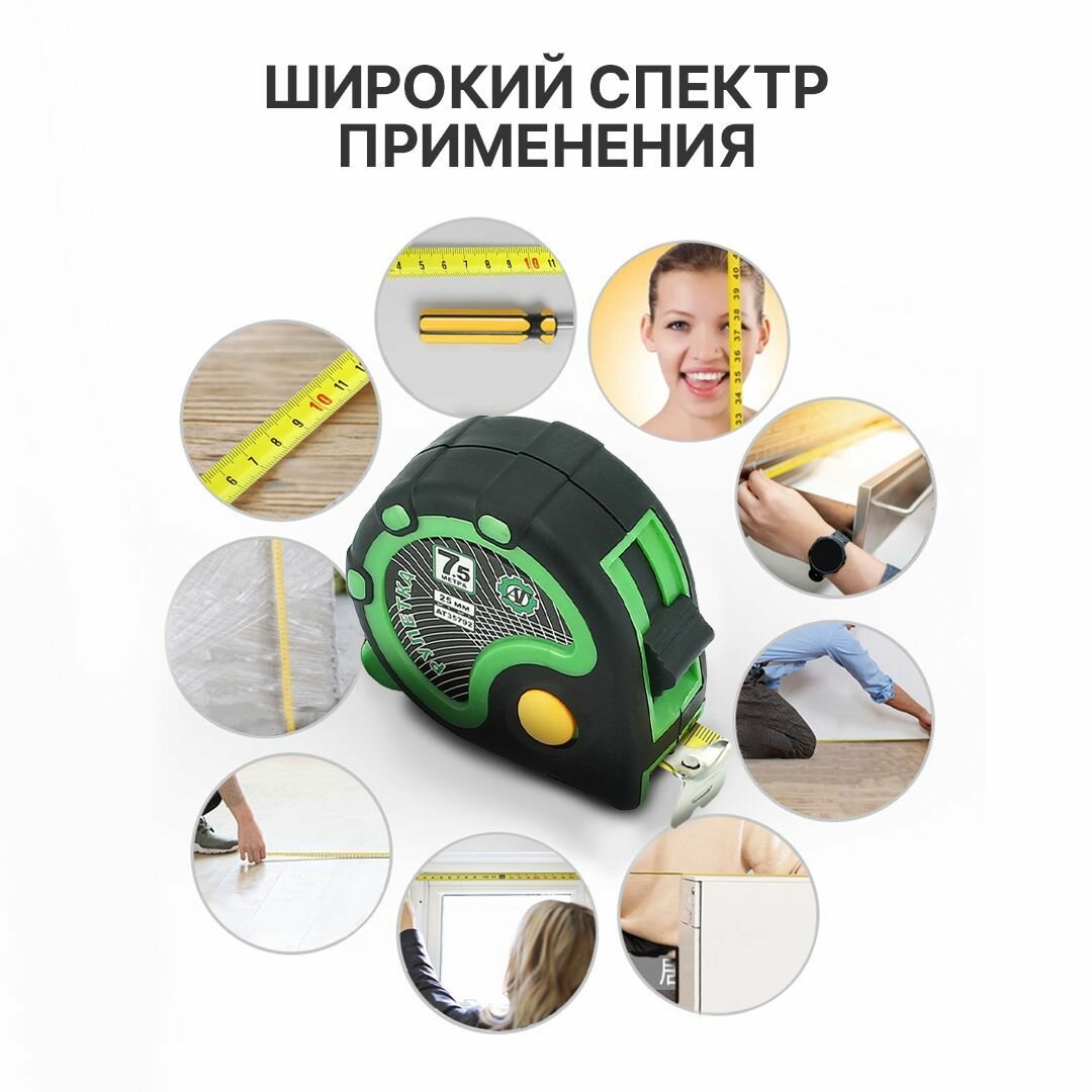 Рулетка измерительная 7,5м х 25мм с 3 фиксаторами и зажимом для пояса интересное: