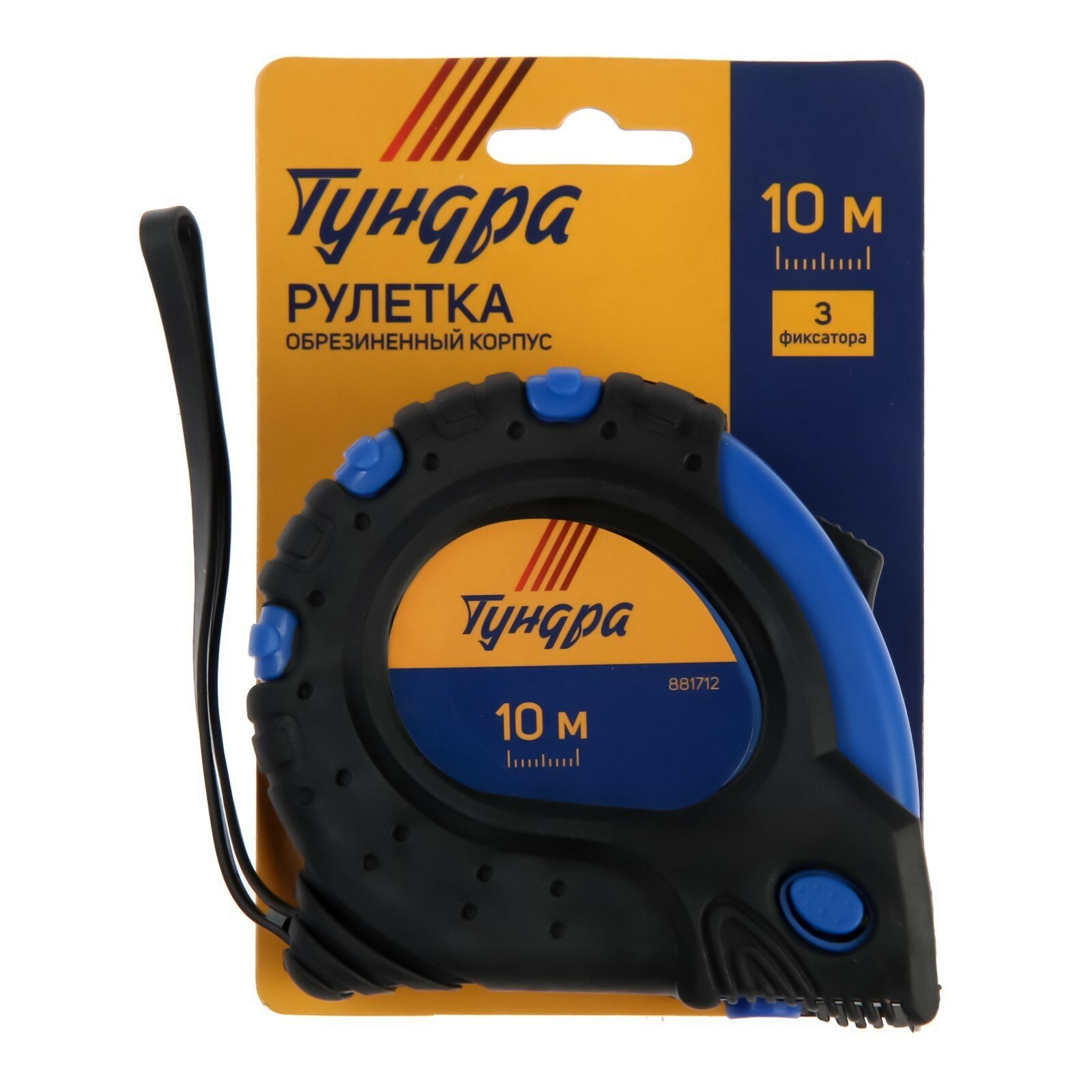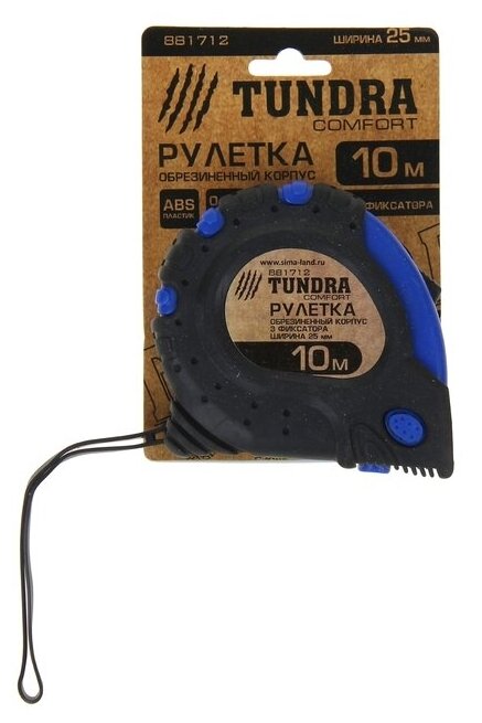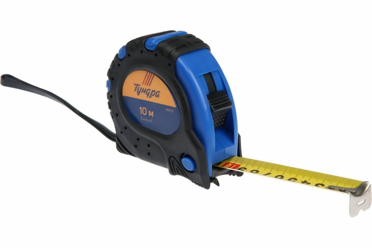 Рулетка TUNDRA, обрезиненный корпус, 3 фиксатора, 10 м х 25 мм TUNDRA 881712 .