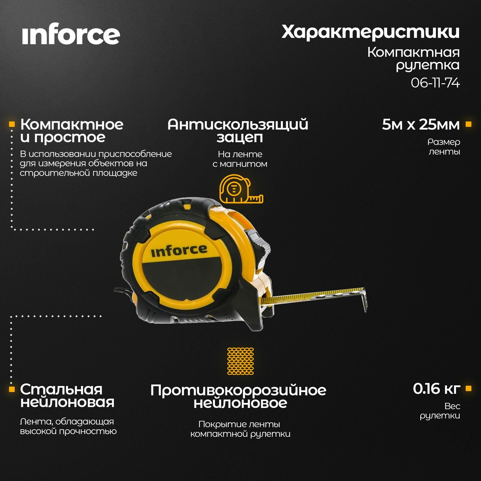 Купить Inforce Рулетка компактная 5Х25 06-11-74