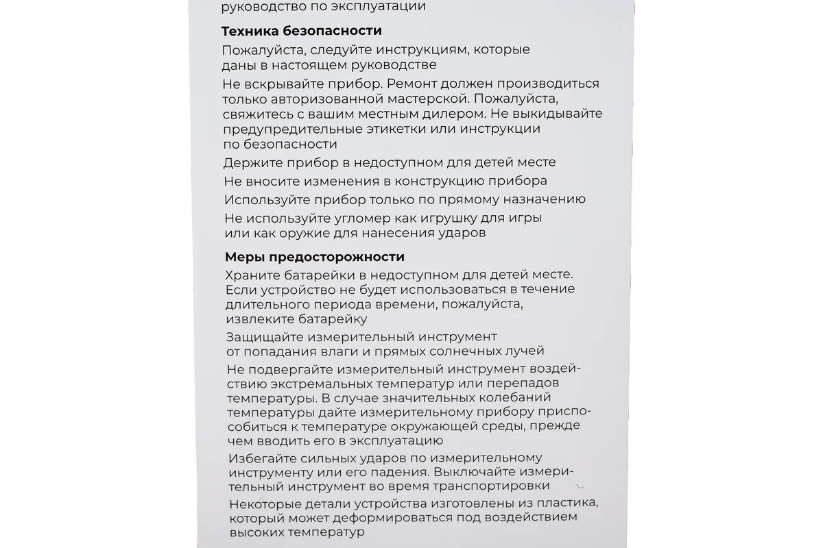| Подробная комплектация | Комплектация Угломер - 1 шт; Батарея - 1 шт; Инструкция - 1 шт; Упаковка - 1 шт. |