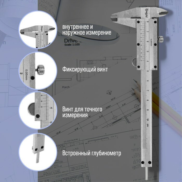 Штангенциркуль Tundra металлический, с глубиномером, цена деления 0,05 мм, 100 мм интересное: