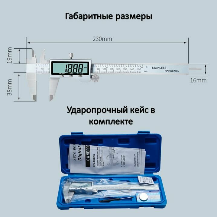 Ниже Вы можете прочитать отзывы на Электронный металлический цифровой штангенциркуль с большим дисплеем, ознакомится с подробными характеристиками, посмотреть интересные обзоры и фотографии на Электронный металлический цифровой штангенциркуль с большим дисплеем.